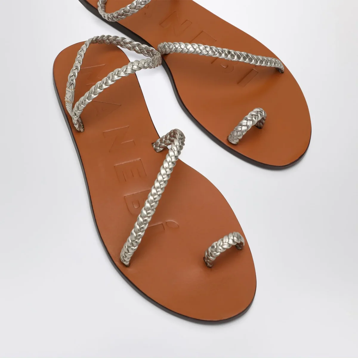Sandali di Manebì in pelle intrecciata caratterizzati da design infradito con anello al dito, sottopiede con logo impresso e suola in gomma.