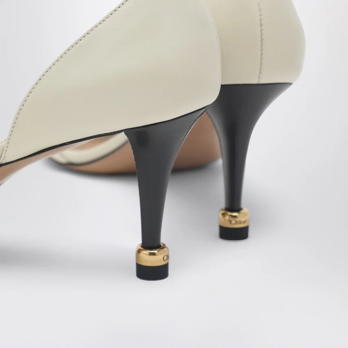 Sandali di Chloé in pelle verniciata bianco avorio• silhouette cut-out• cinturino a T con borchie cabochon Gold• cinturino regolabile alla caviglia• tacco con dettaglio dorato• suola in cuoio