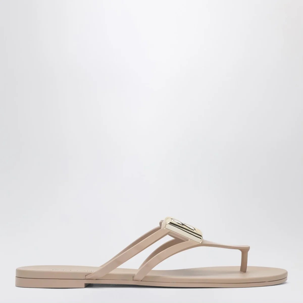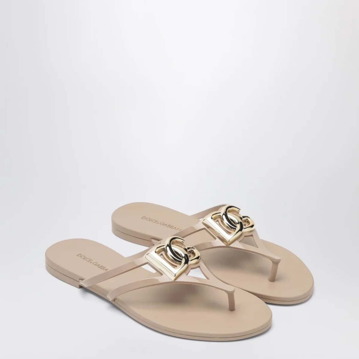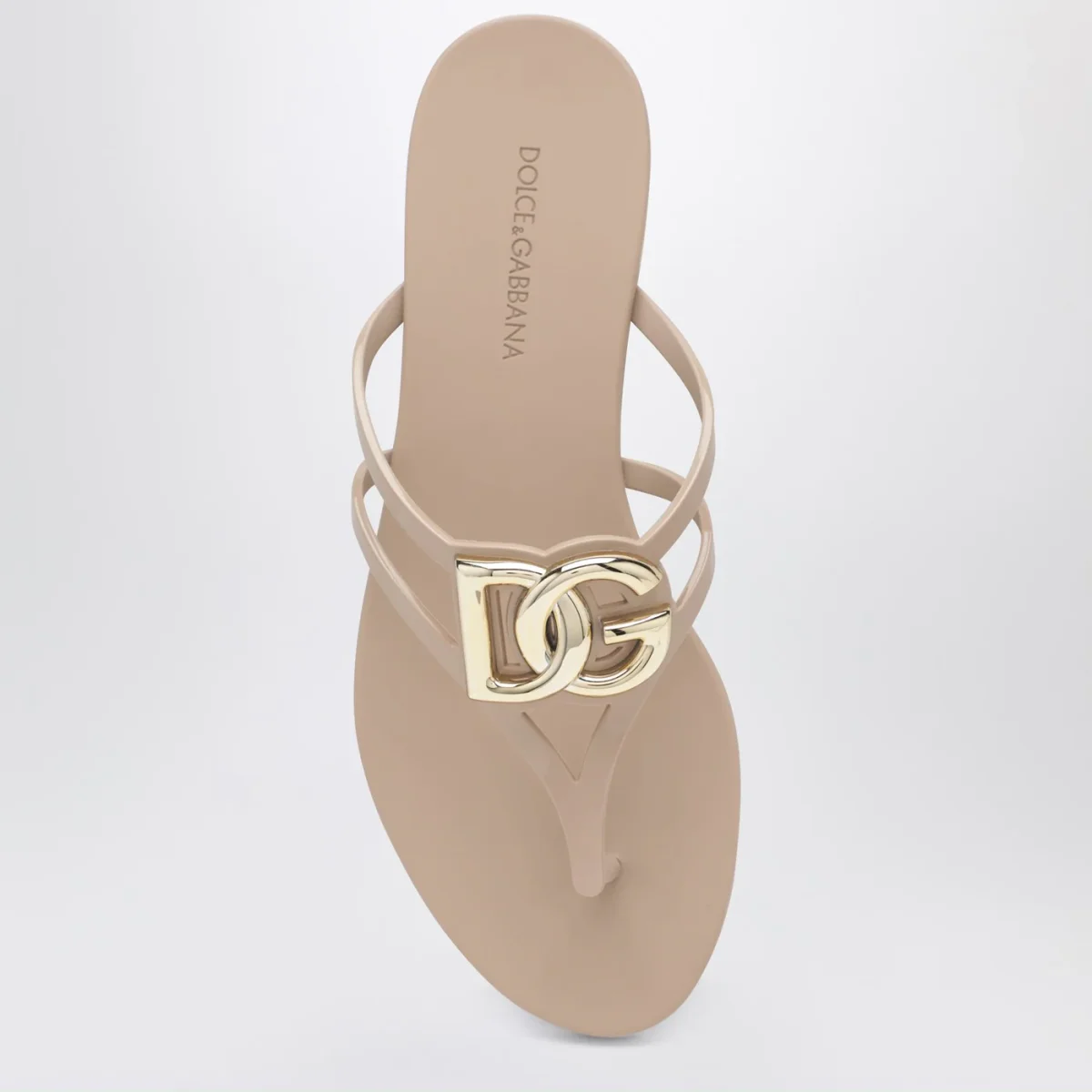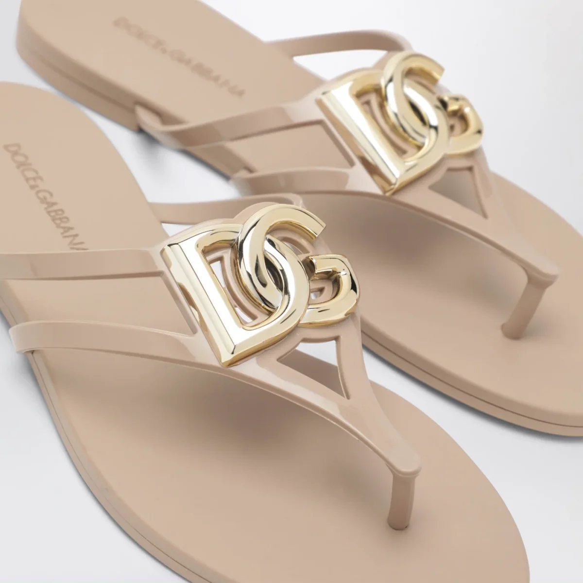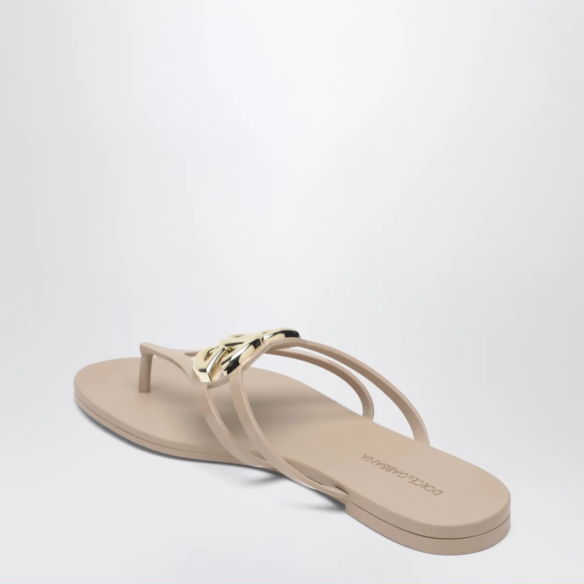 Sandali infradito di Dolce & Gabbana con tomaia in gomma rosa cipria• logo DG in metallo di colore oro• loro inciso nel sottopiede• suola in gomma