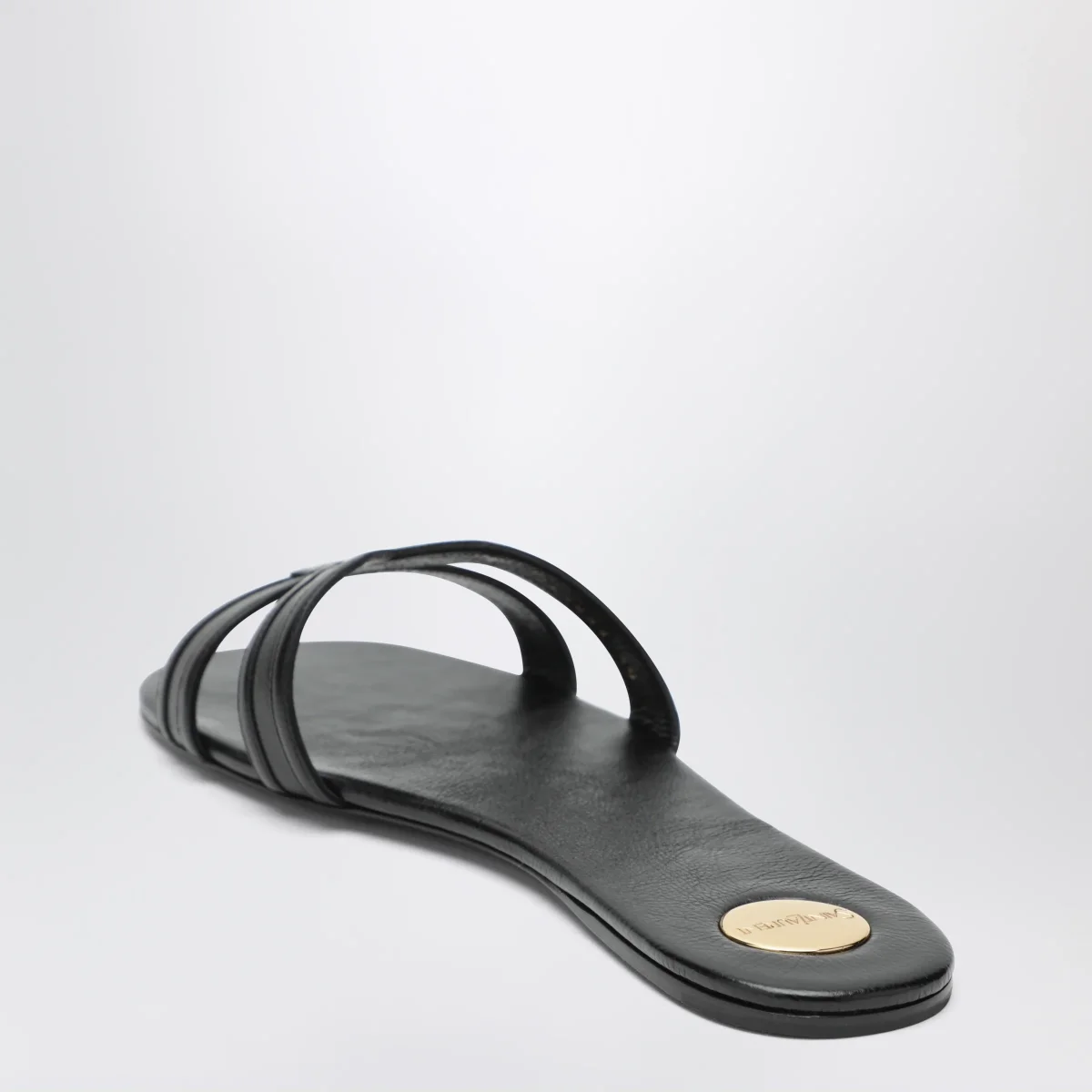 • Targhetta rotonda in metallo con logo Saint Laurent inciso sulla soletta