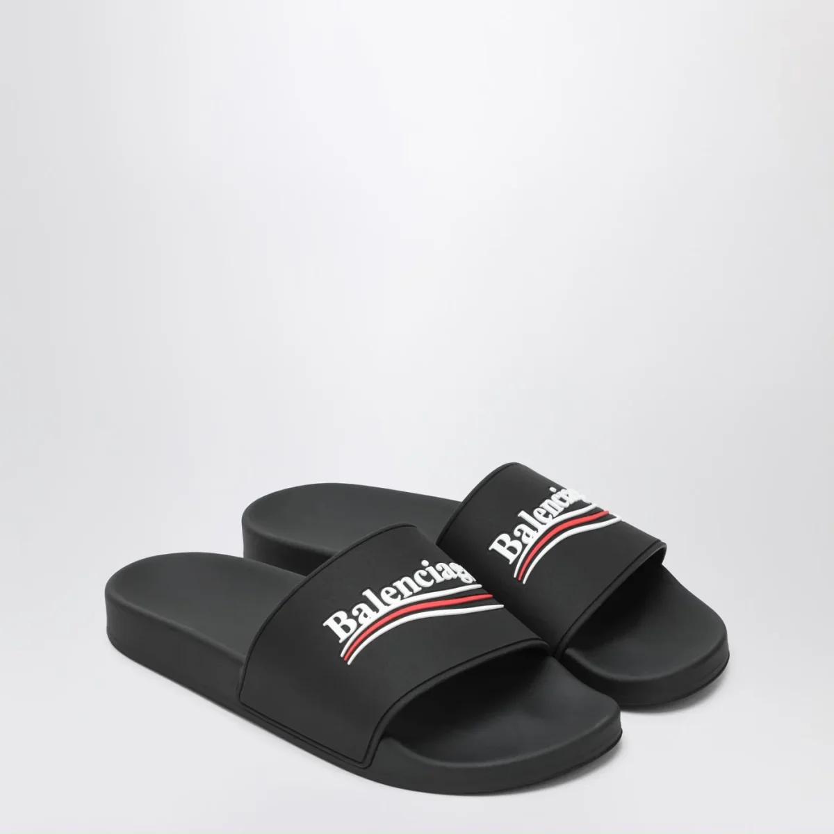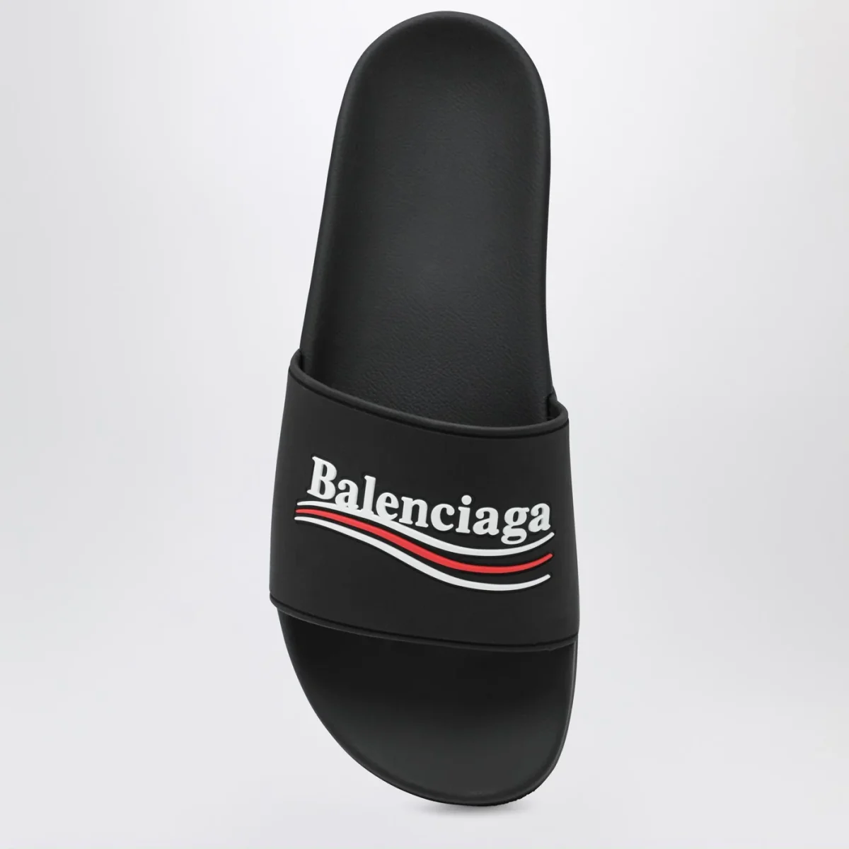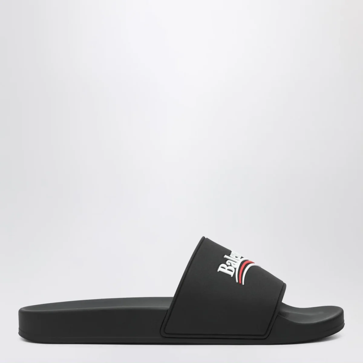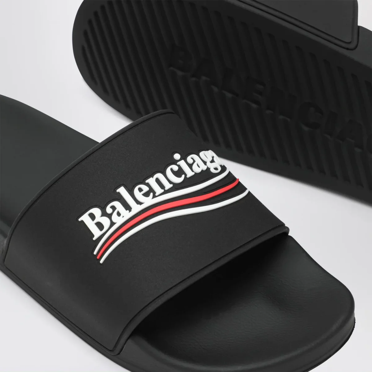 Sandali di Balenciaga in gomma nera• motivo political campaign sul cinturino• soletta in gomma modellata• suola e soletta tono su tono