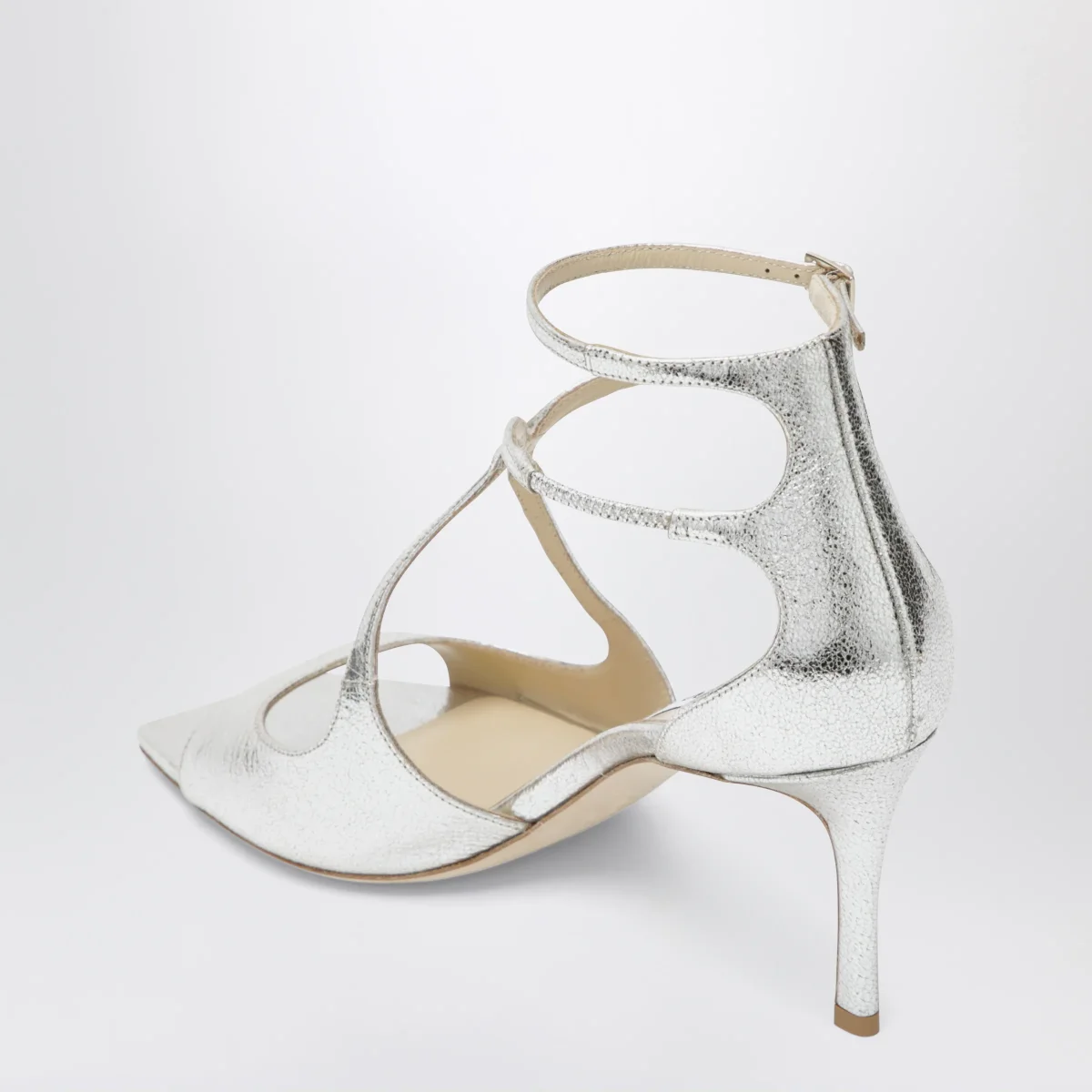 Sandalo alto di Jimmy Choo in pelle• Colore: Champagne• Punta aperta squadrata• Tomaia a listini• Tacco sottile• Cinturino alla caviglia regolabile con fibbiette• Suola in cuoio