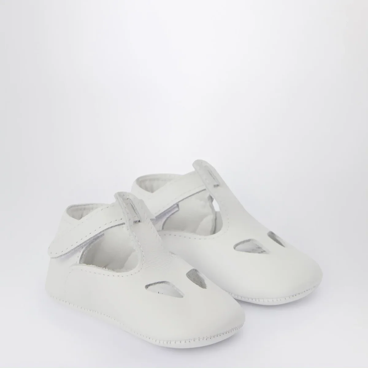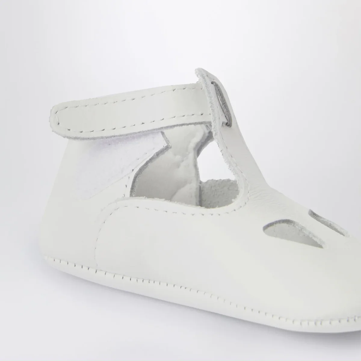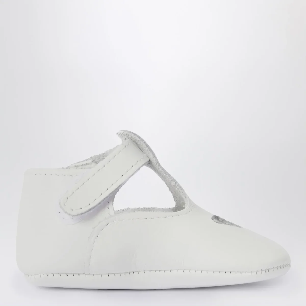 Scarpa da neonato de Il Gufo in pelle bianca, caratterizzata da design ad occhielli e cinturino alla caviglia regolabile con velcro.