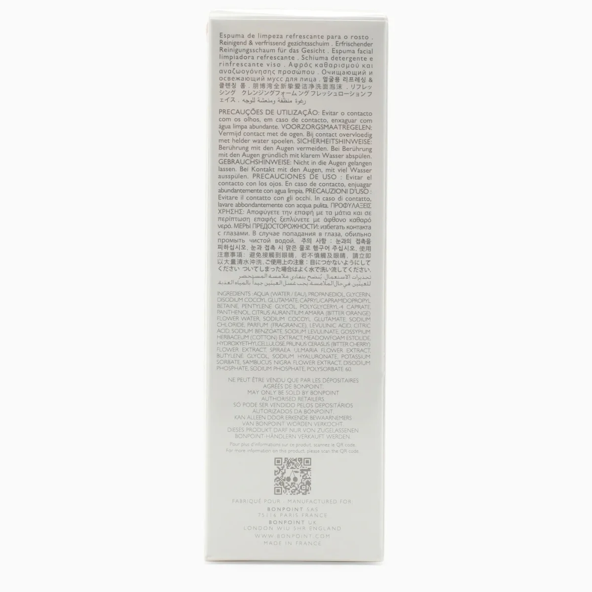 Aqua Water / Eau, Propanediol, Glycerin, Disodium Cocoyl Glutamate, Capryl/Capramidopropyl Betaine, Pentylene Glycol, Polyglyceryl-4 Caprate, Panthenol, Citrus Aurantium Amara Bitter Orange Flower Water, Sodium Cocoyl Glutamate, Sodium Chloride, Parfum Fragrance, Levulinic Acid, Citric Acid, Sodium Benzoate, Sodium Levulinate, Gossypium Herbaceum Cotton Extract, Meadowfoam Estolide, Hydroxyethylcellulose, Prunus Cerasus Bitter Cherry Flower Extract, Spiraea Ulmaria Flower Extract, Butylene Glycol, Sodium Hyaluronate, Potassium Sorbate, Sambucus Nigra Flower Extract, Disodium Phosphate, Sodium Phosphate, Polysorbate 60.