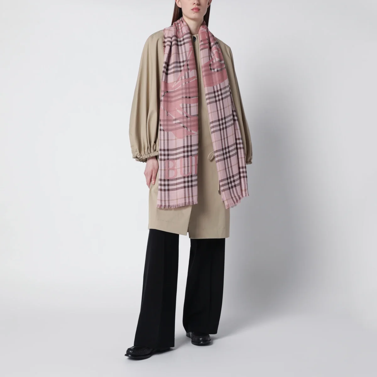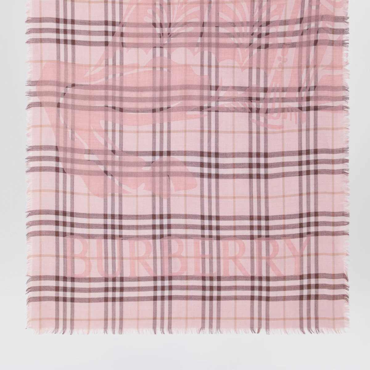 Sciarpa ampia di Burberry in lana e seta leggera con motivo Check• Colore: Bow Pink• Logo Equestrian Knight Design• Design rettangolare• Frange corte e sottili lungo i bordi
