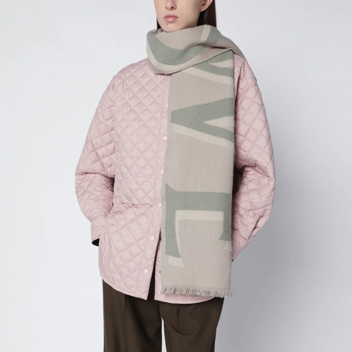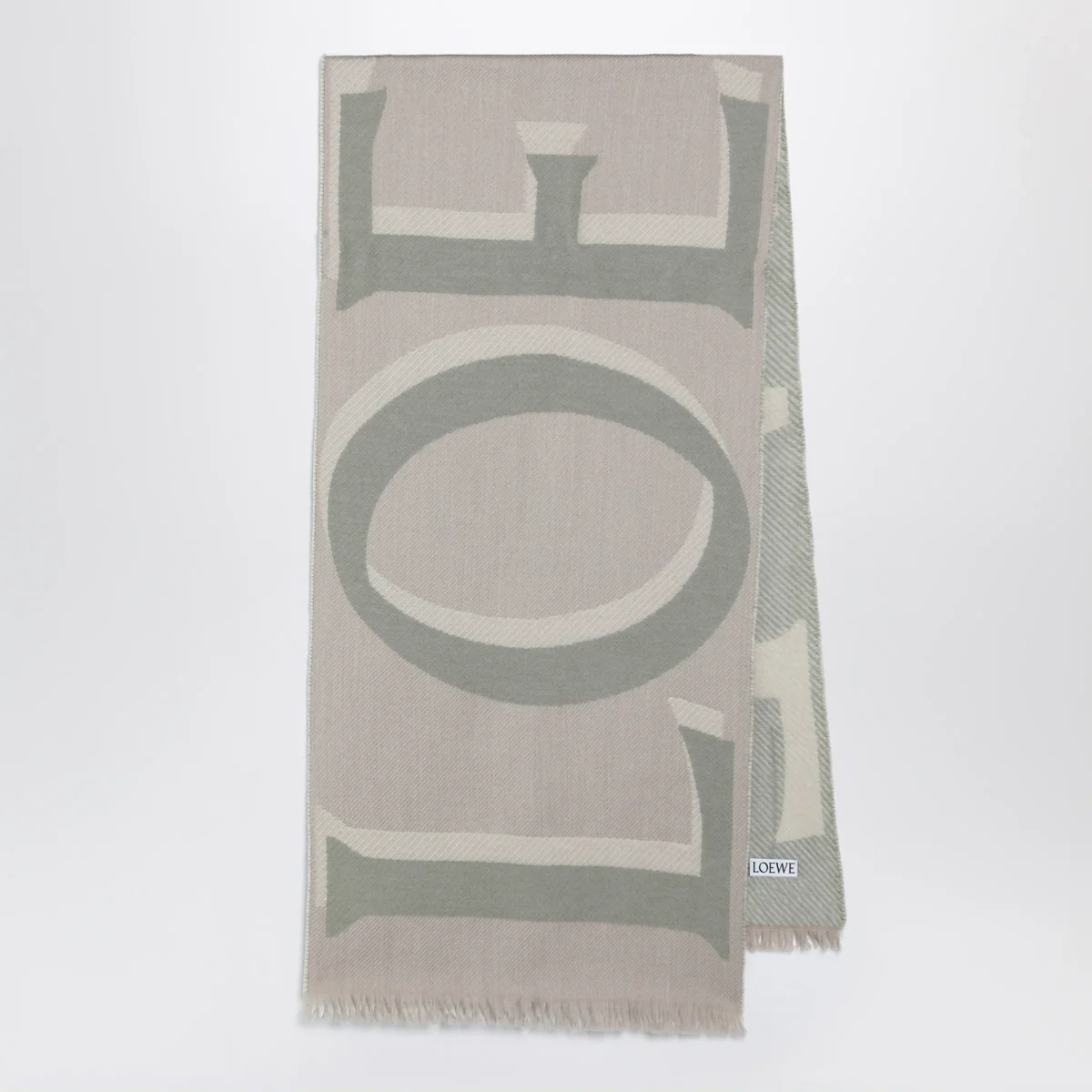 Sciarpa di Loewe in lana e cashmere beige• intarsio con logo lettering a contrasto da un lato e dall’altro• bordi con piccole frange sottili