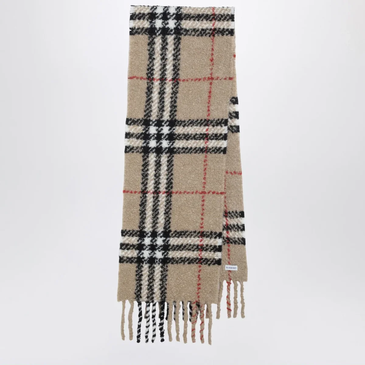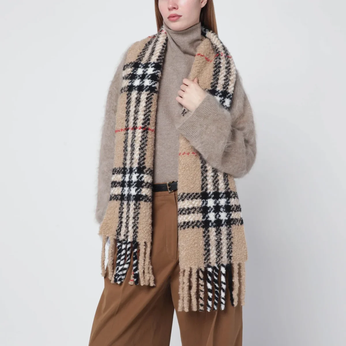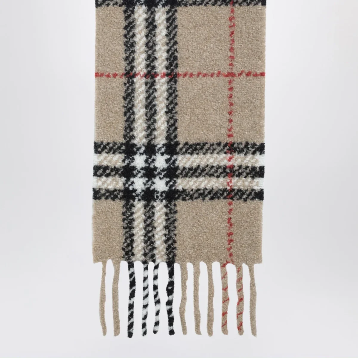 Sciarpa di Burberry in lana e alpaca beige• motivo Check• bordi con frange