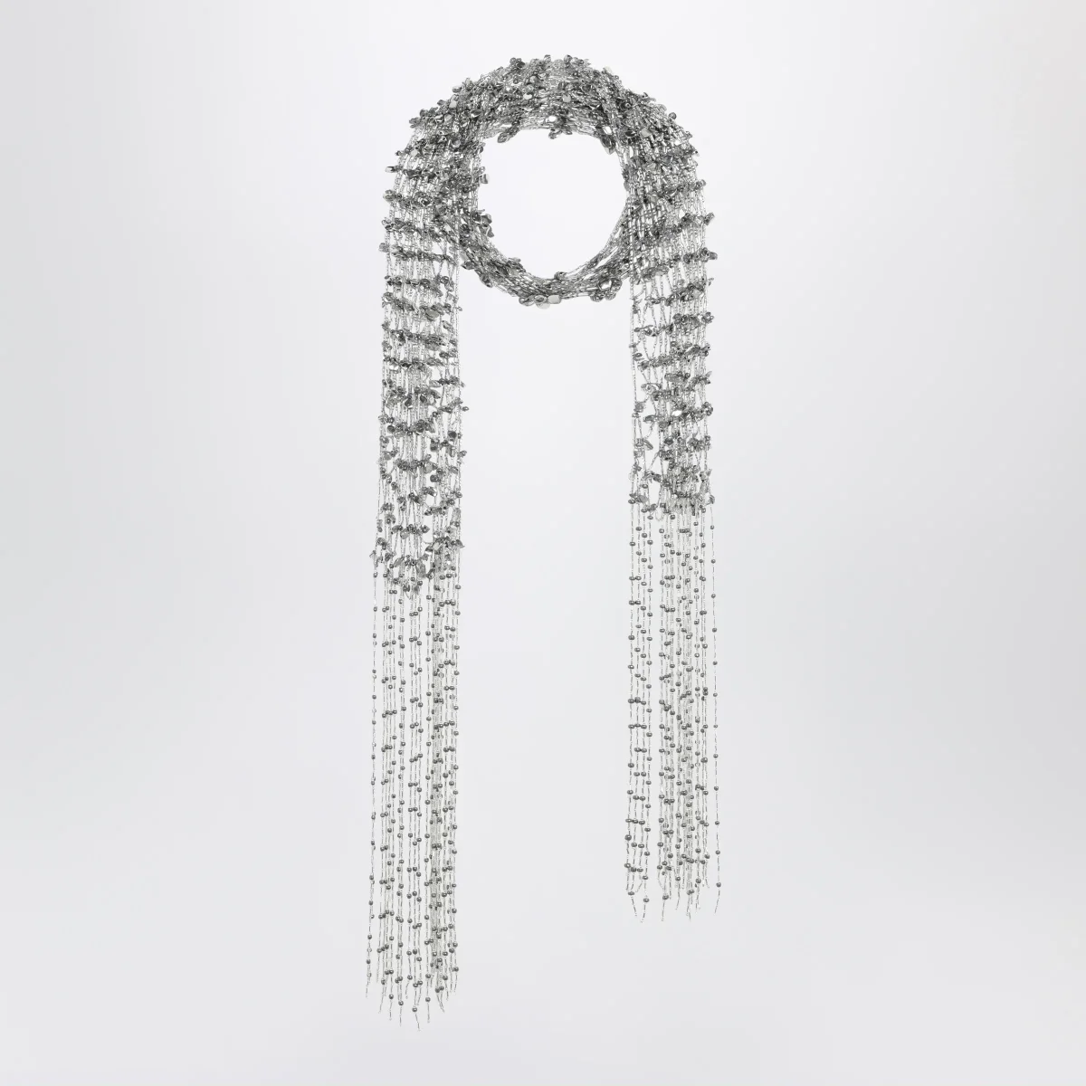 Sciarpa di Dries Van Noten• Colore: Argento• Lavorata a mano• Frange decorative