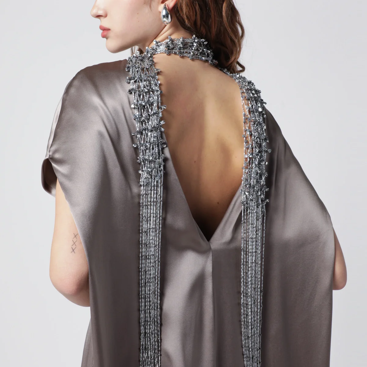 Sciarpa con perline e frange argento