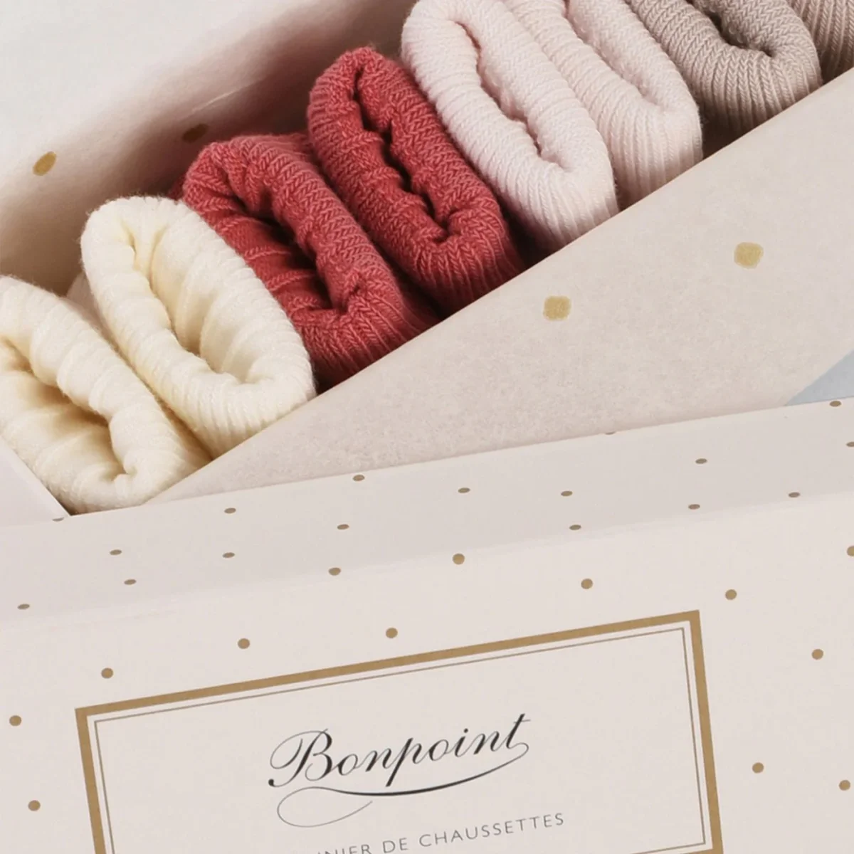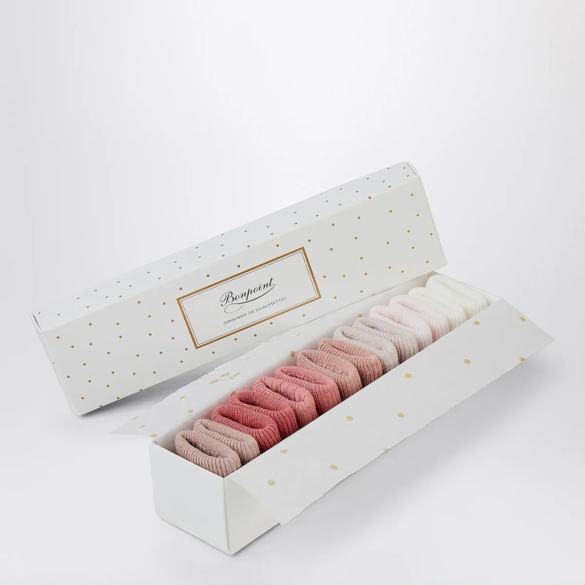 Set di sette calzini di Bonpoint in misto cotone in sette colori diversi nei toni del rosa e del bianco con risvolto a costine.