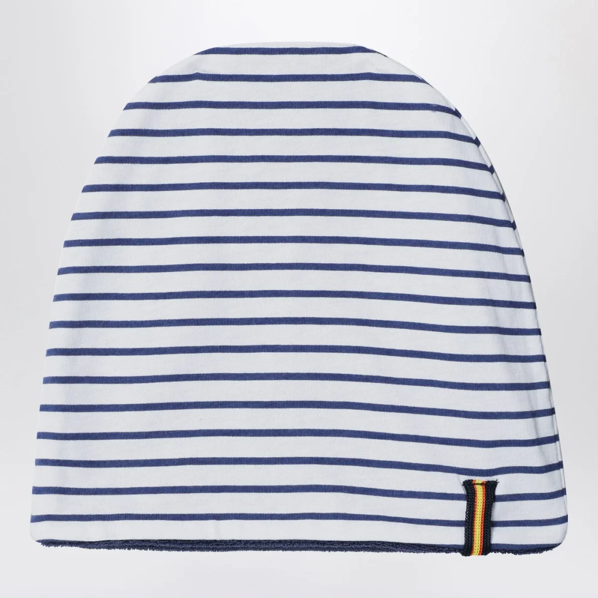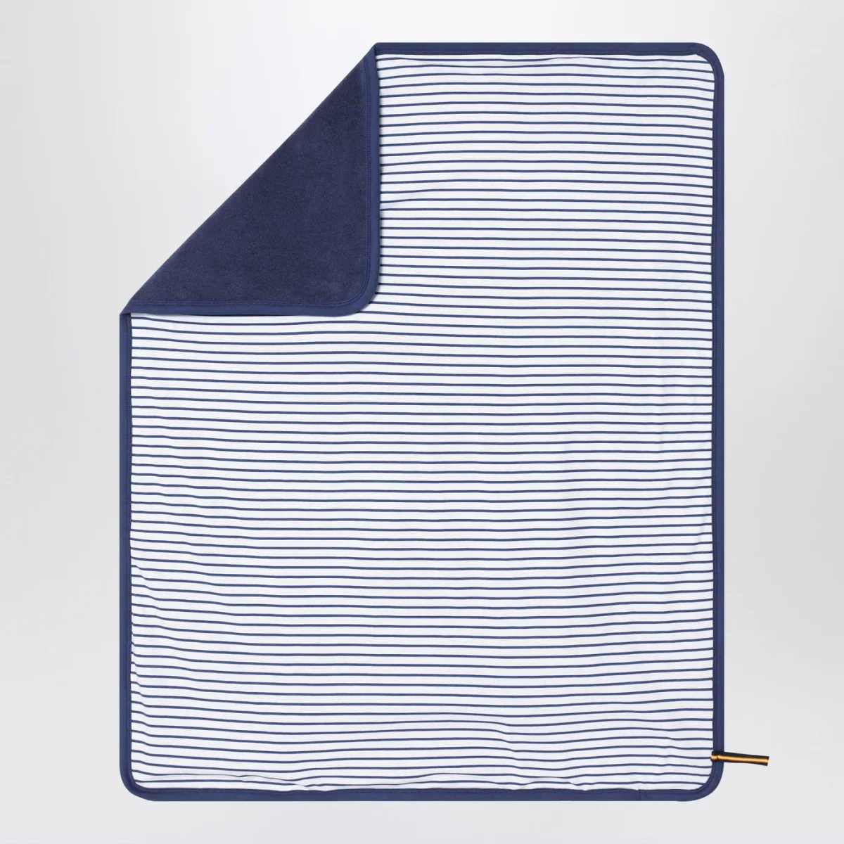 Set di K-Way in jersey di cotone dal design reversibile con tinta unita su un lato e motivo a righe sull’altro, composto da un berretto e una copertina con dettaglio logo sul lato.