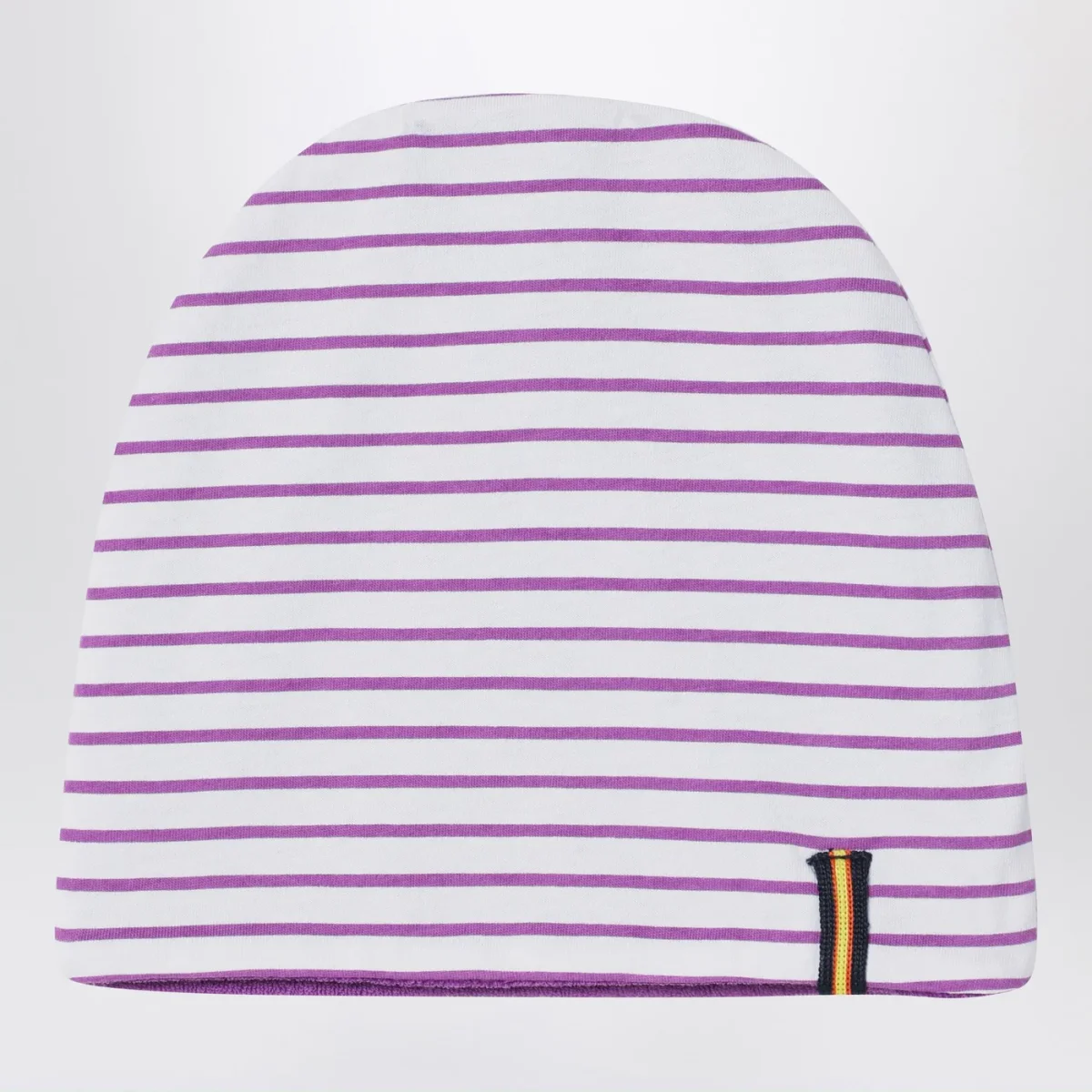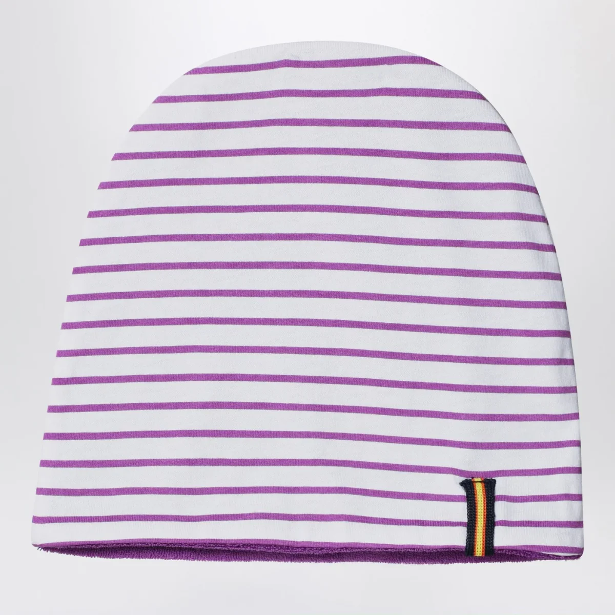 Set di K-Way in jersey di cotone dal design reversibile con tinta unita su un lato e motivo a righe sull’altro, composto da un berretto e una copertina con dettaglio logo sul lato.