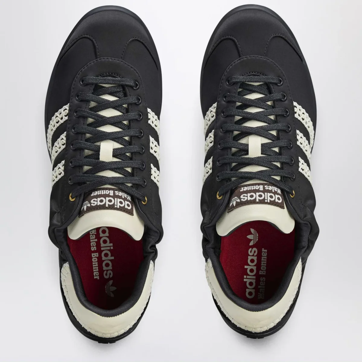 Sneaker di adidas Originals realizzata in collaborazione con Wales Bonner in tessuto nera, caratterizzata da bande laterali e tallone con logo impresso a contrasto, punta tonda, chiusura con stringhe, linguetta con patch logo e suola in gomma con logo posteriore.