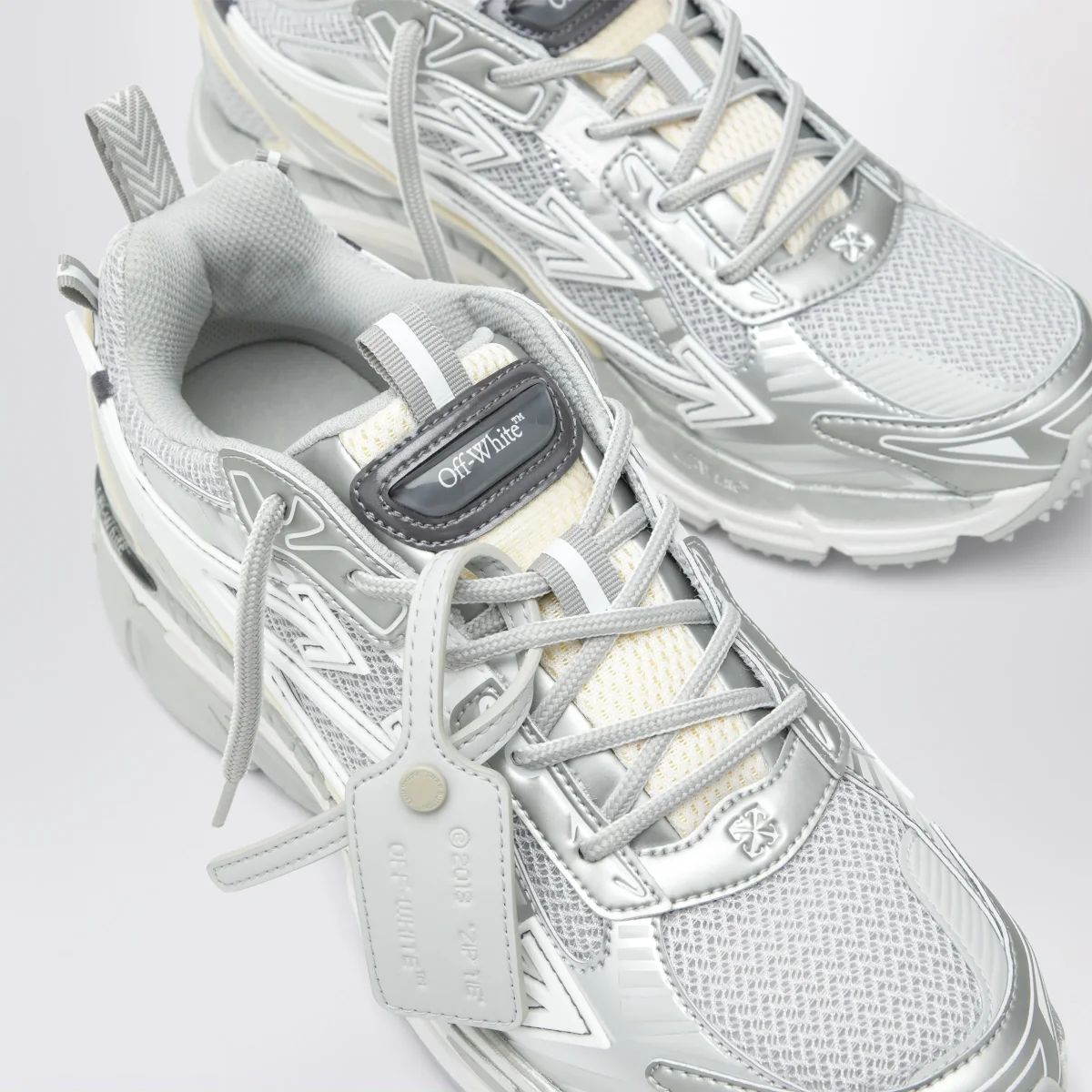 Sneakers di Off-White in mesh e pelle sintetica• Colore: Grey/Silver• Motivo Arrows• Logo sulla linguetta e laterale• Chiusura con stringhe• Targhetta con logo Zip Tie• Punta tonda• Suola in gomma