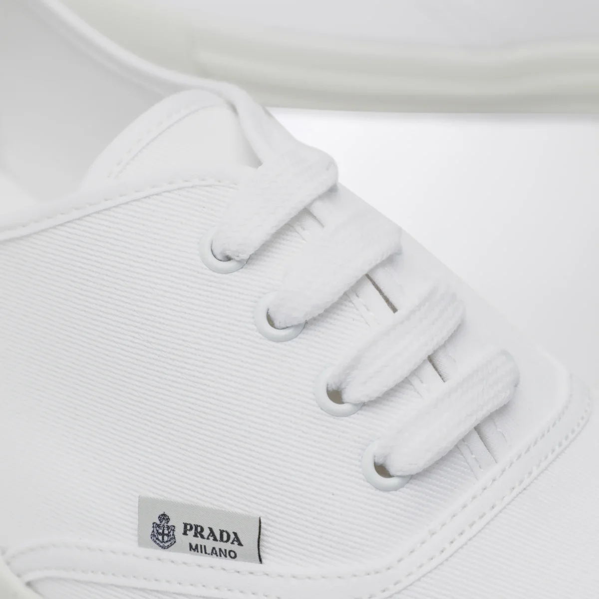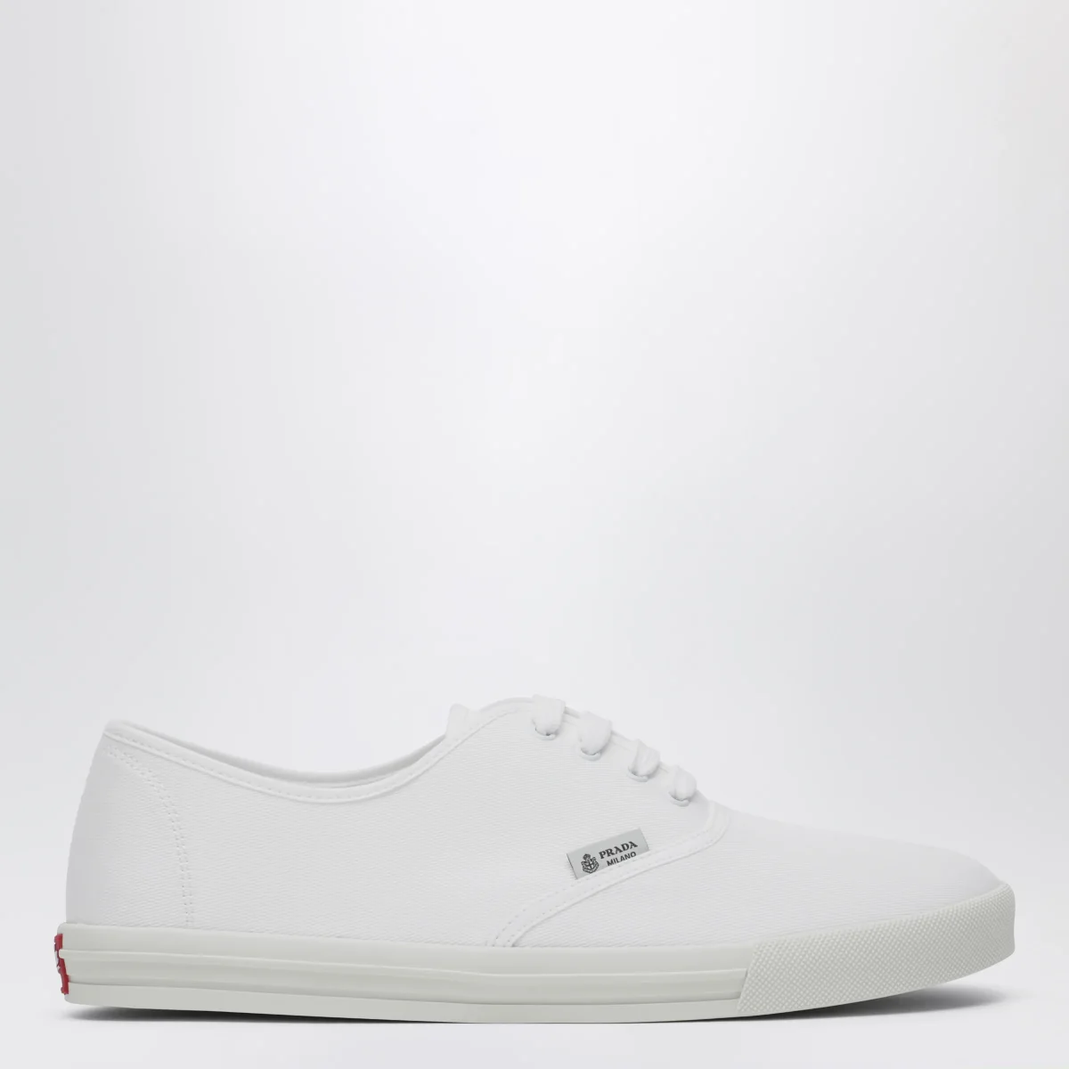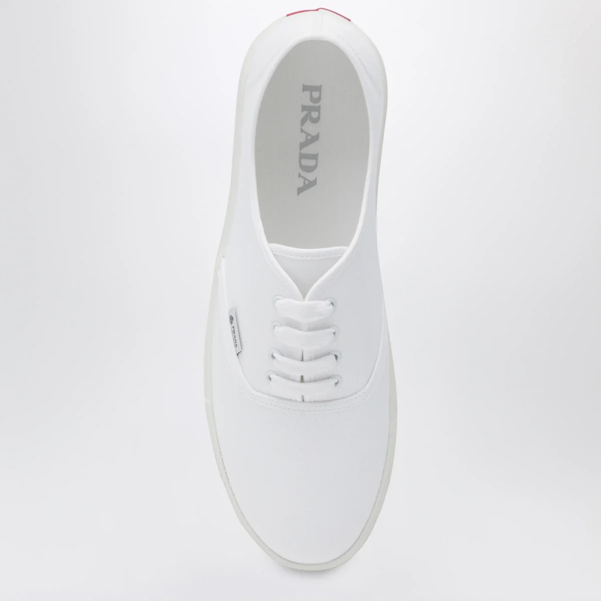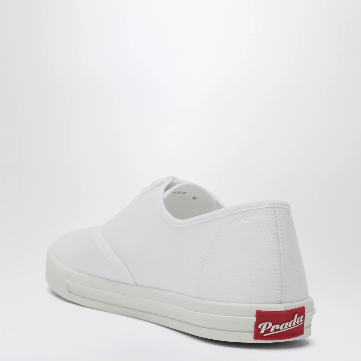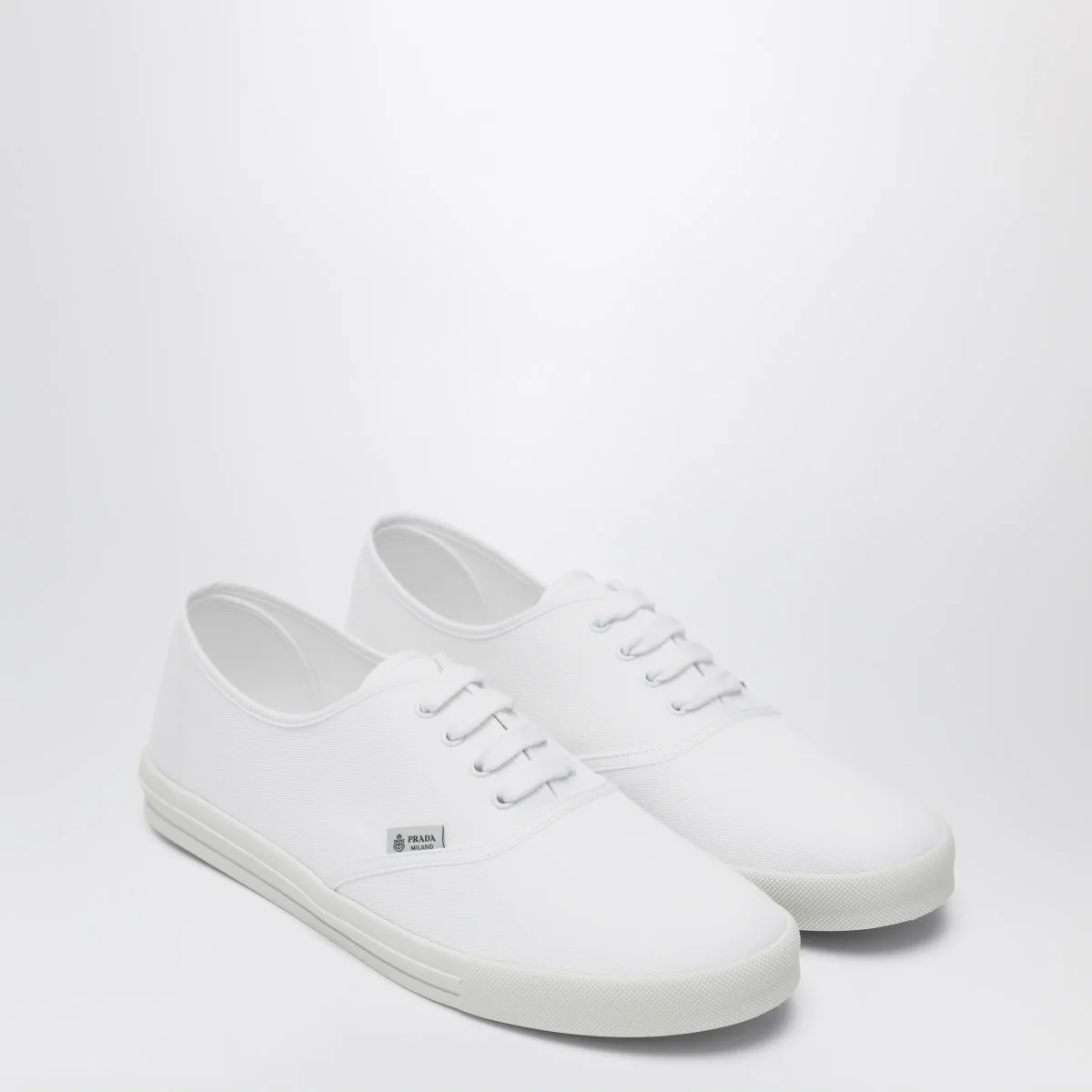 Sneaker di Prada in drill di cotone con una costruzione leggera• Colore: Bianco• Passanti in metallo e stringhe in cotone• Logo su etichetta tessuto• Suola in gomma a cassetta• Sottopiede non estraibile in tessuto