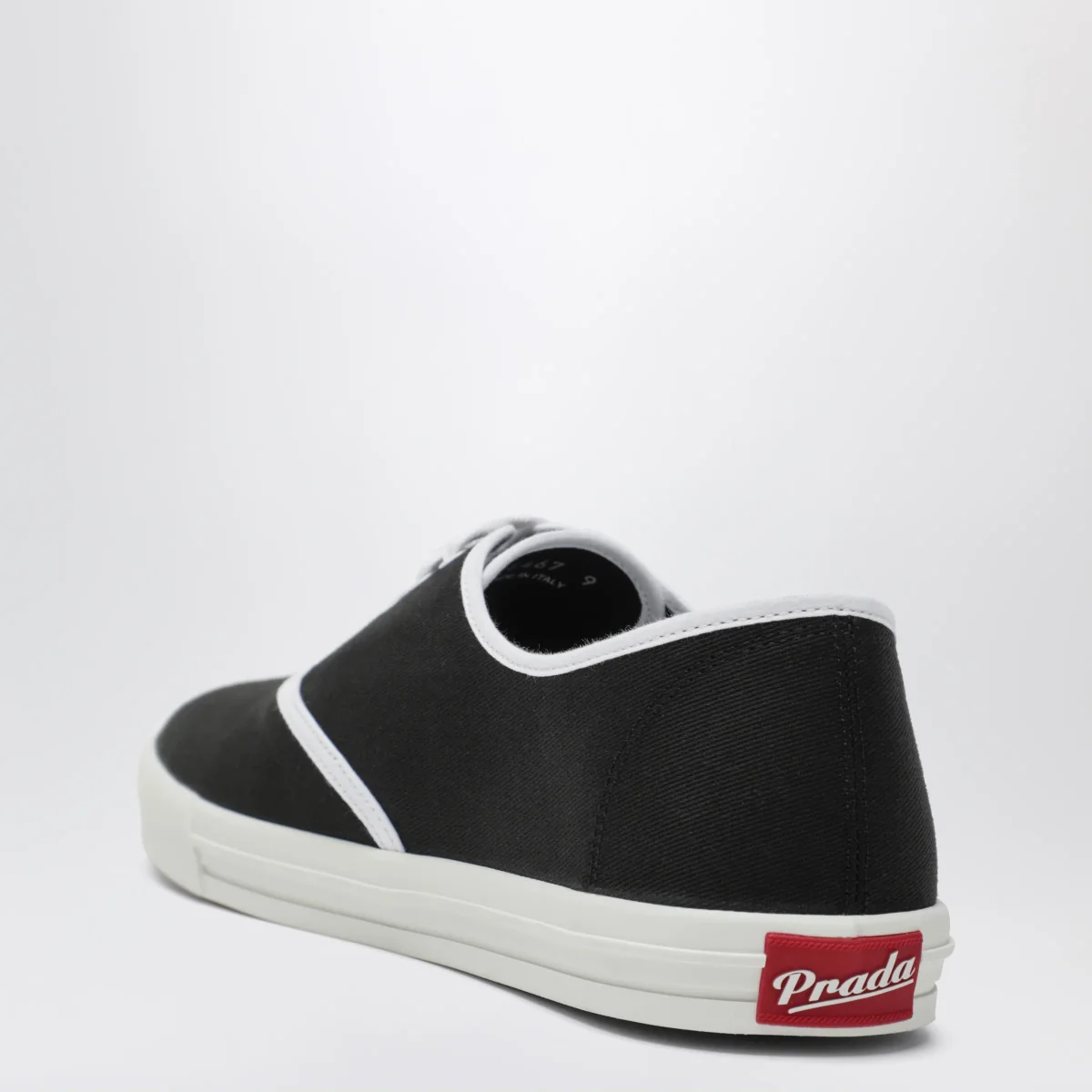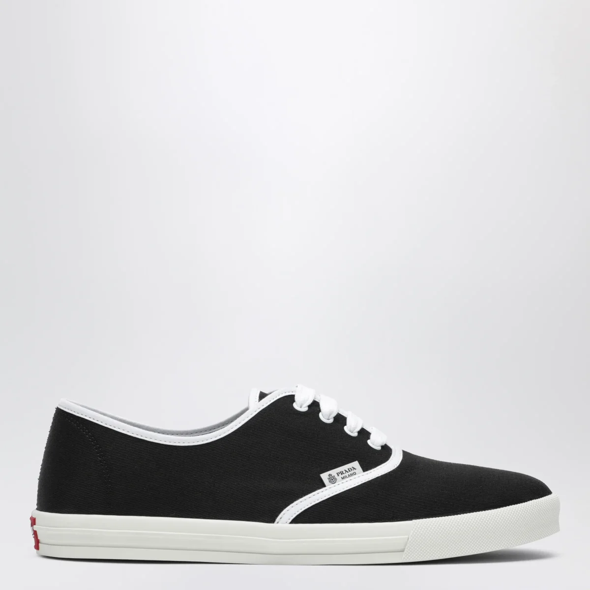 Sneaker di Prada in drill di cotone con una costruzione leggera• Colore: Nero• Passanti in metallo e stringhe in cotone• Logo su etichetta tessuto• Suola in gomma a cassetta• Sottopiede non estraibile in tessuto
