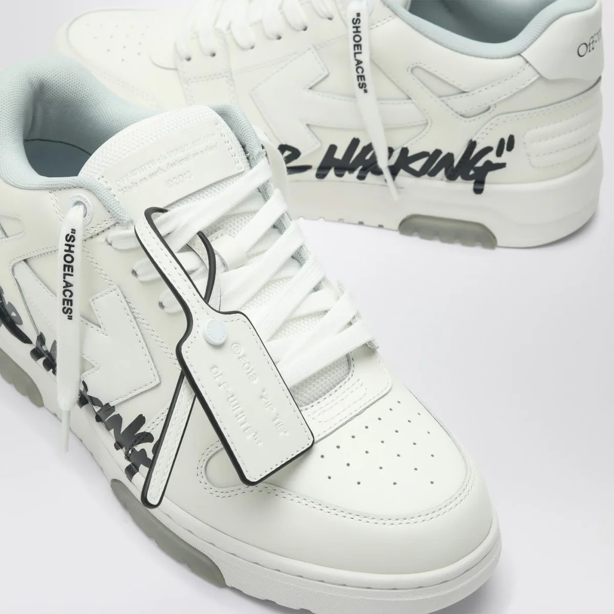 Sneaker di Off-White tomaia in pelle bianca• chiusura con stringhe logate• scritta nera laterale• caratteristica targhetta con logo Zip Tie• punta tonda• suola in gomma