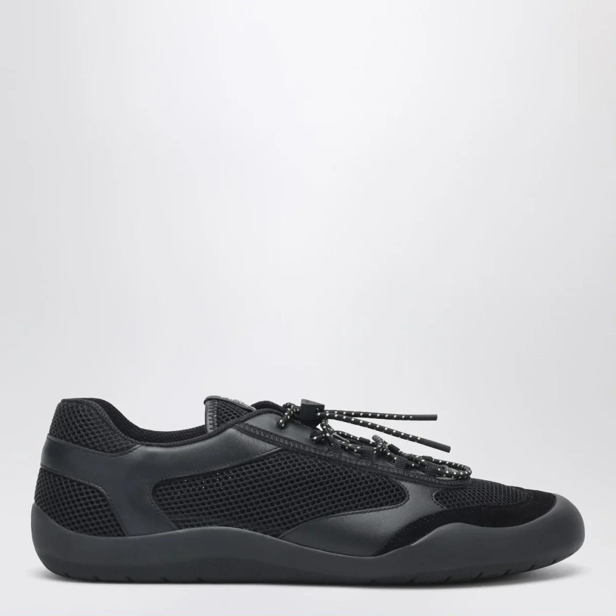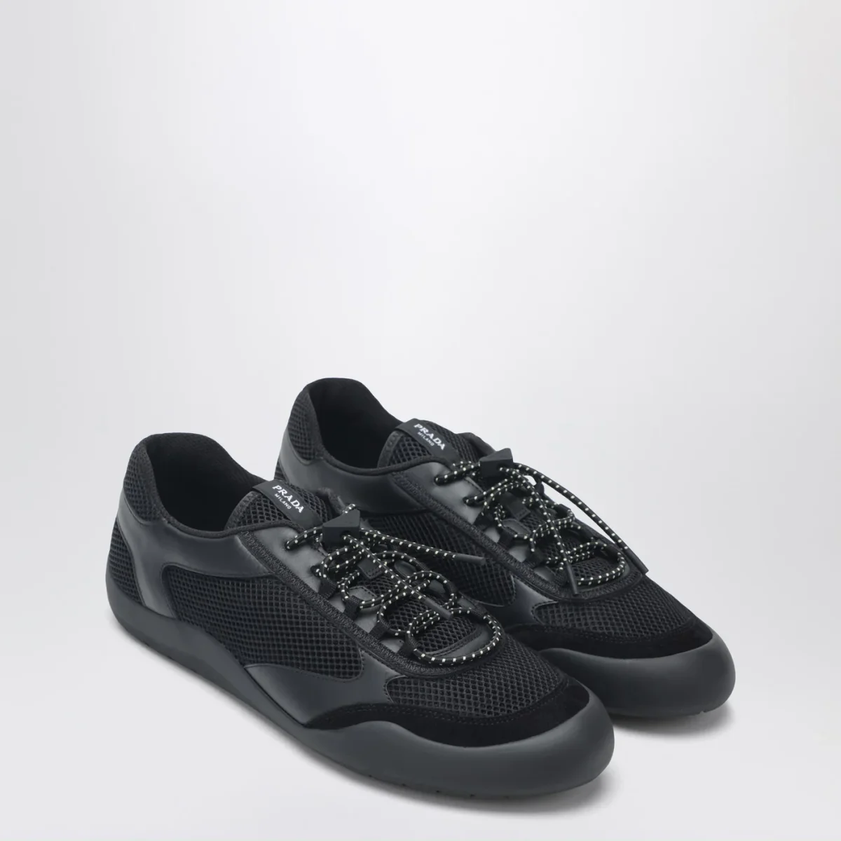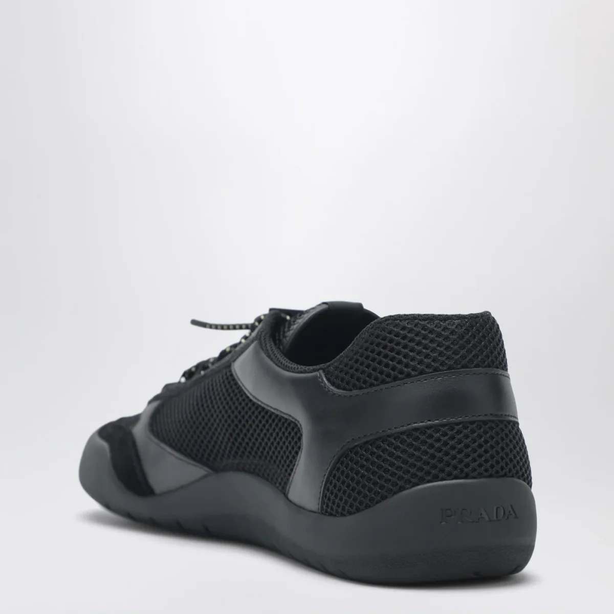 Sneaker di Prada in tessuto a rete con profili in pelle nere