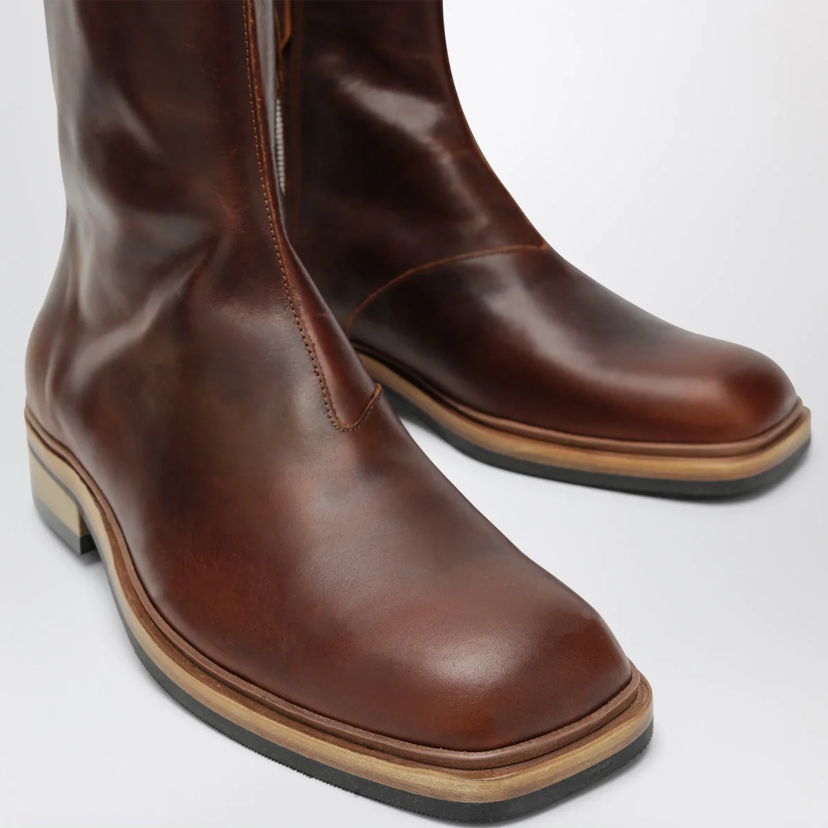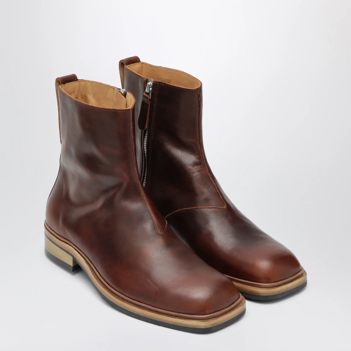 Stivale Daimono in pelle di vitello di Our Legacy• Colore: Marrone (whisky)• Pelle di vitello inglese accuratamente selezionata• Chiusura laterale con cerniera YKK• Linguetta in pelle• Fodera interamente in pelle• Suola Vibram con intersuola in pelle Kilger, per resistenza e comfort