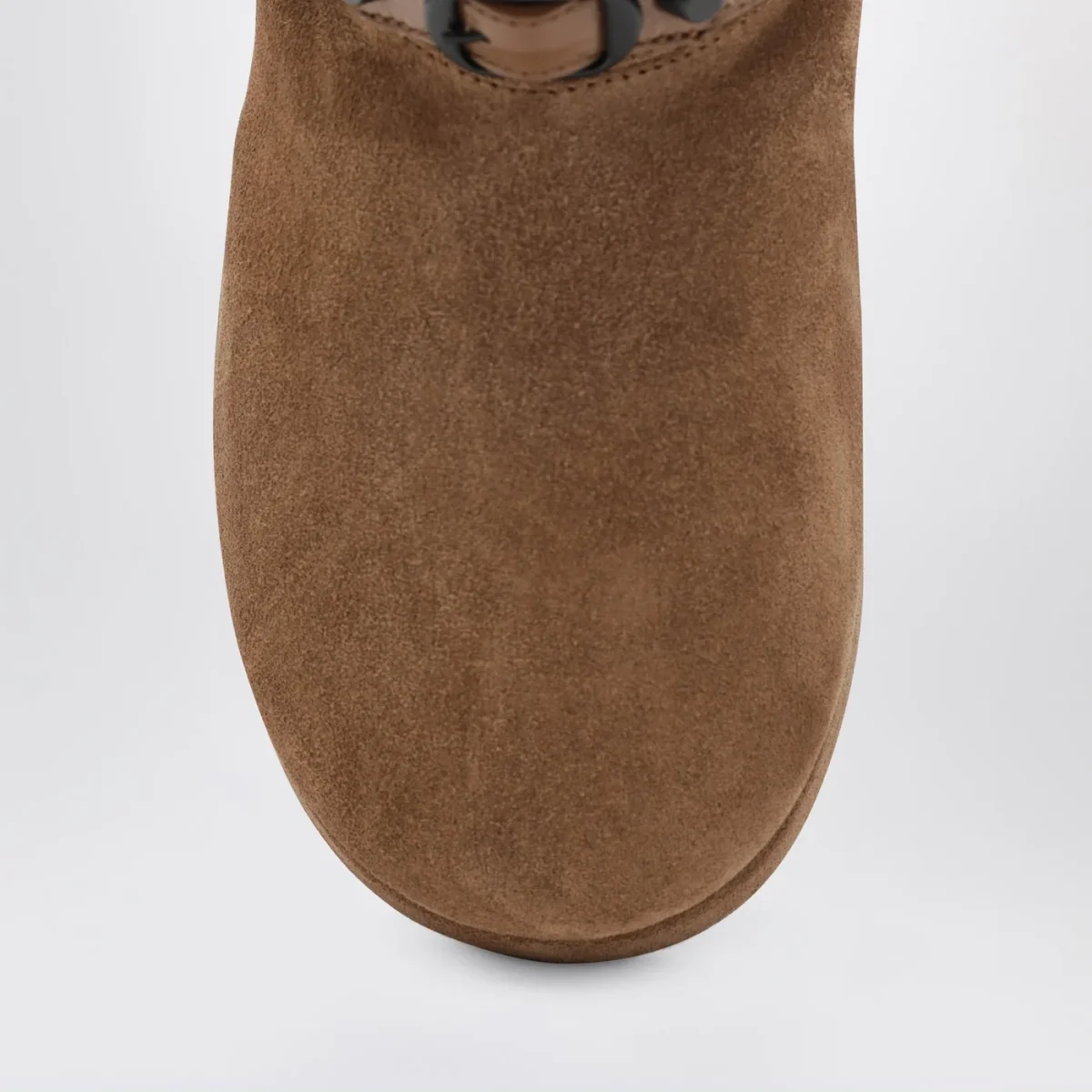 Stivaletti di Balenciaga in pelle di vitello e materiale sintetico color cammello, caratterizzati da punta tonda, cinghia sulla tomaia con borchie e fibbie in ABS, logo impresso sul retro e suola tono su tono.