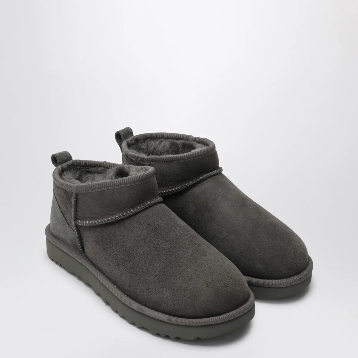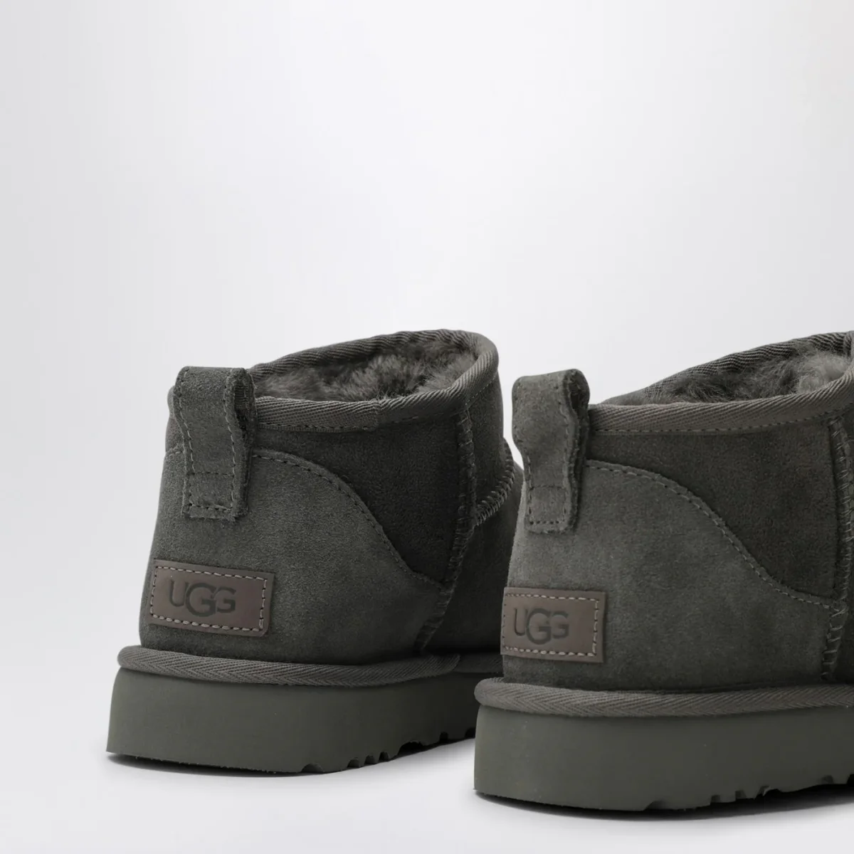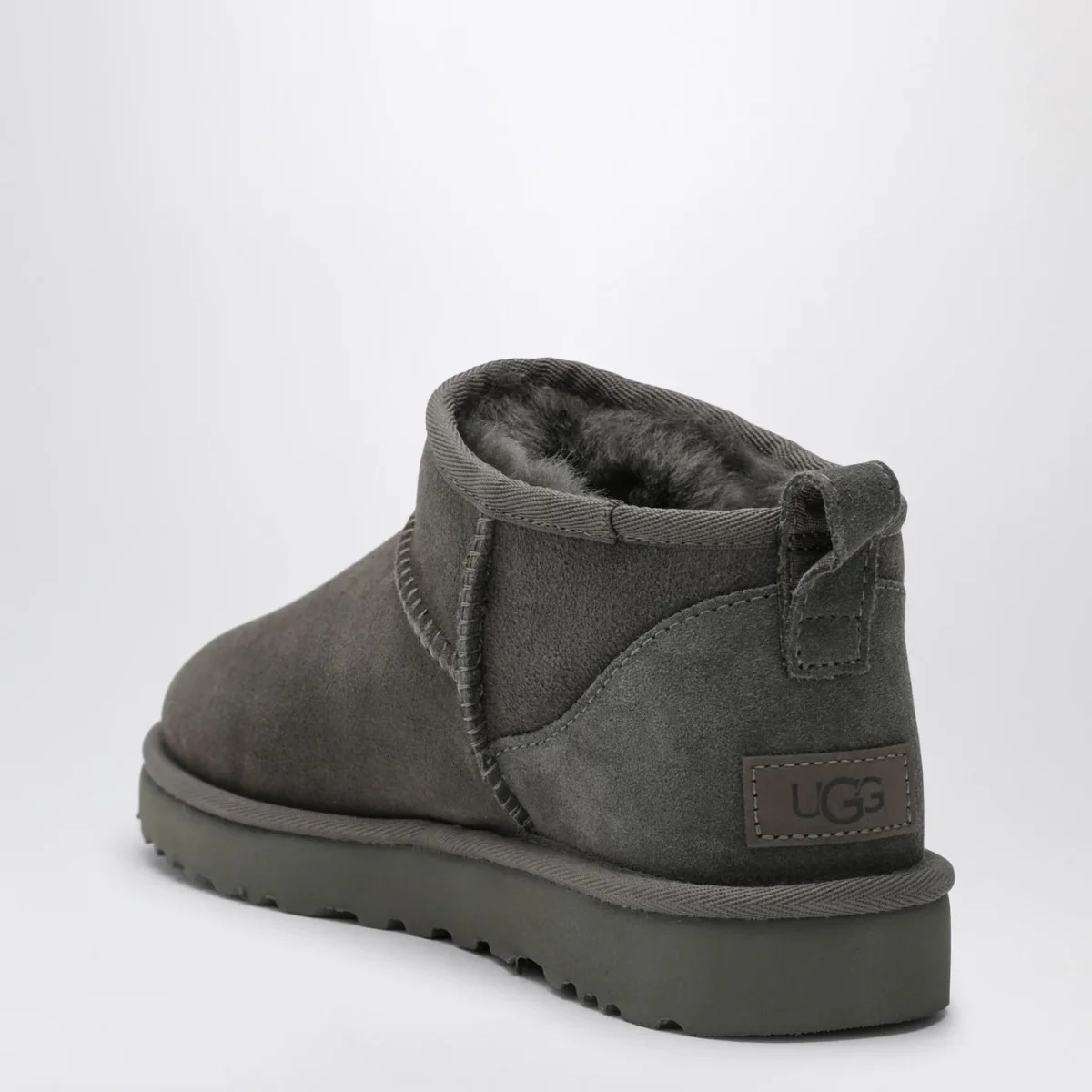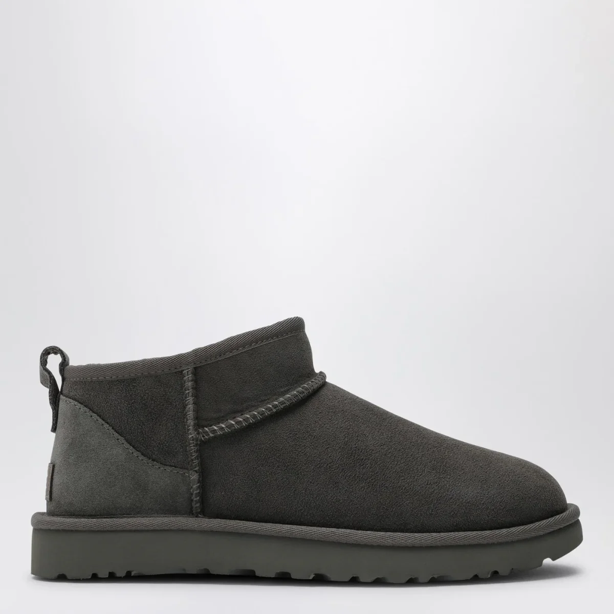 Stivaletti bassi di UGG in pelle scamosciata grigi, caratterizzati da tomaia in montone rovesciato, punta tonda, bordo in nylon, patch con logo lettering posteriore, tirante sul retro e suola Treadlite by UGG.