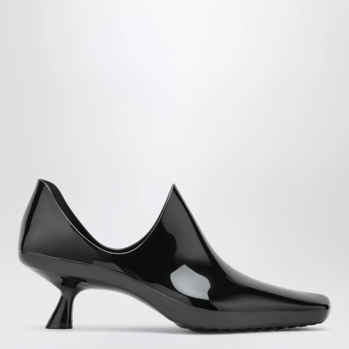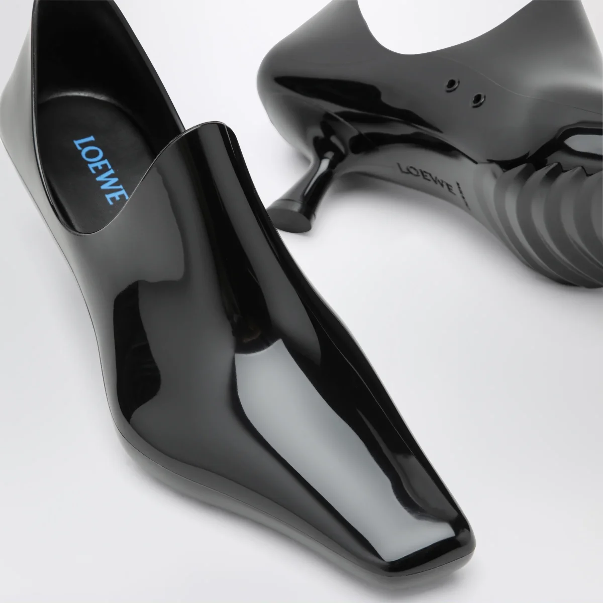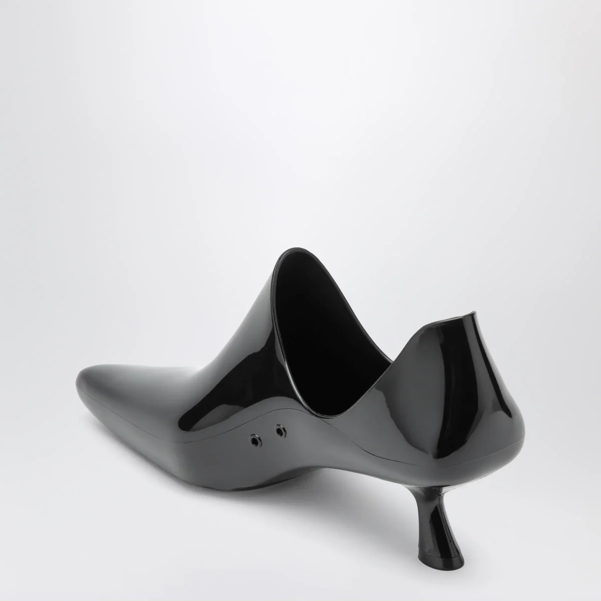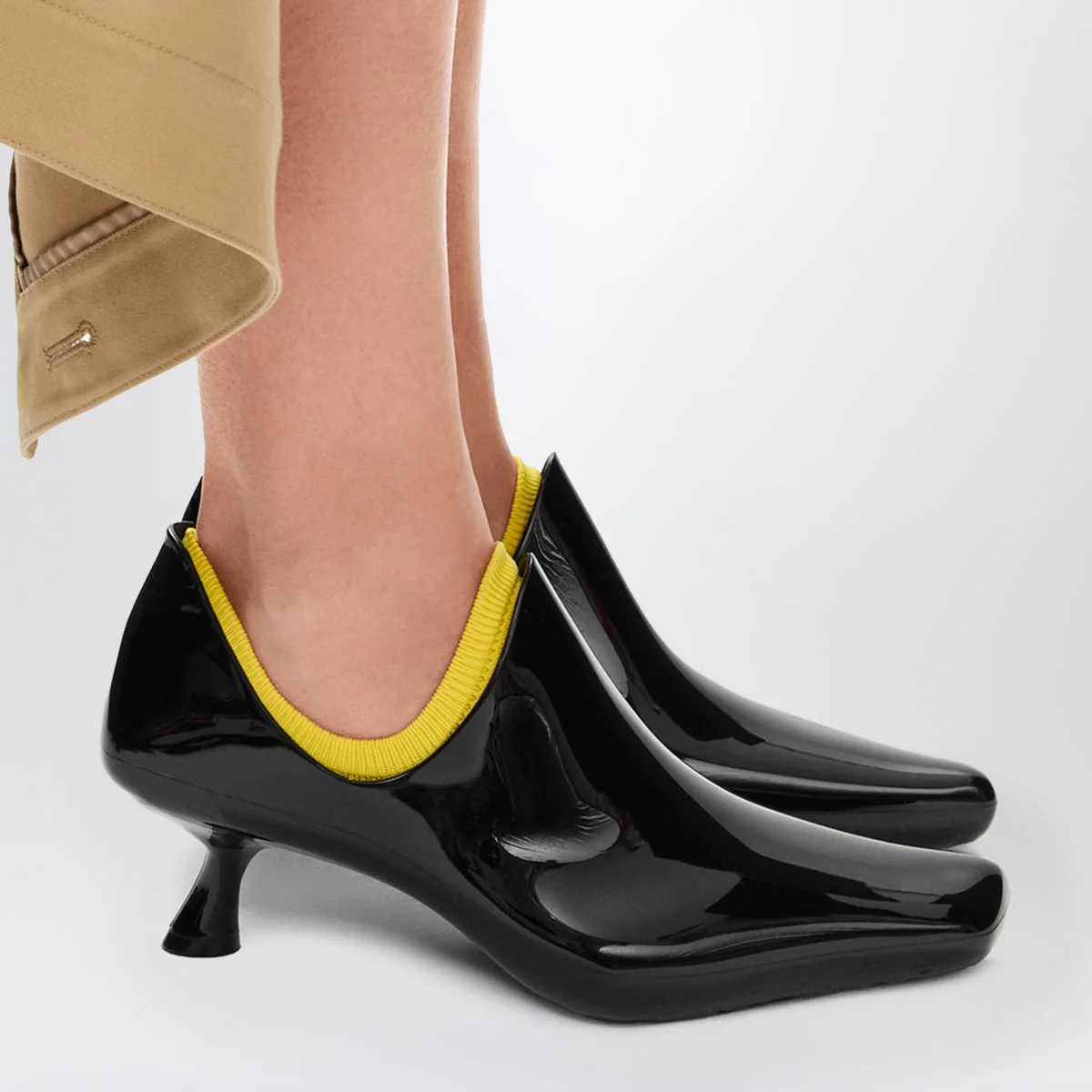 Tronchetto Emily Aqua in PVC con finitura lucida di Loewe• Colore: Nero• Silhouette architettonica• Costruzione monoblocco modellata• Tacco obliquo 45 mm• Soletta imbottita in pelle• Inclusi 3 calzini (rosso, giallo e azzurro)