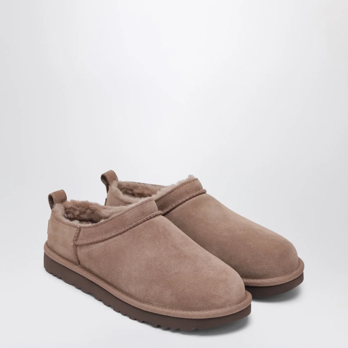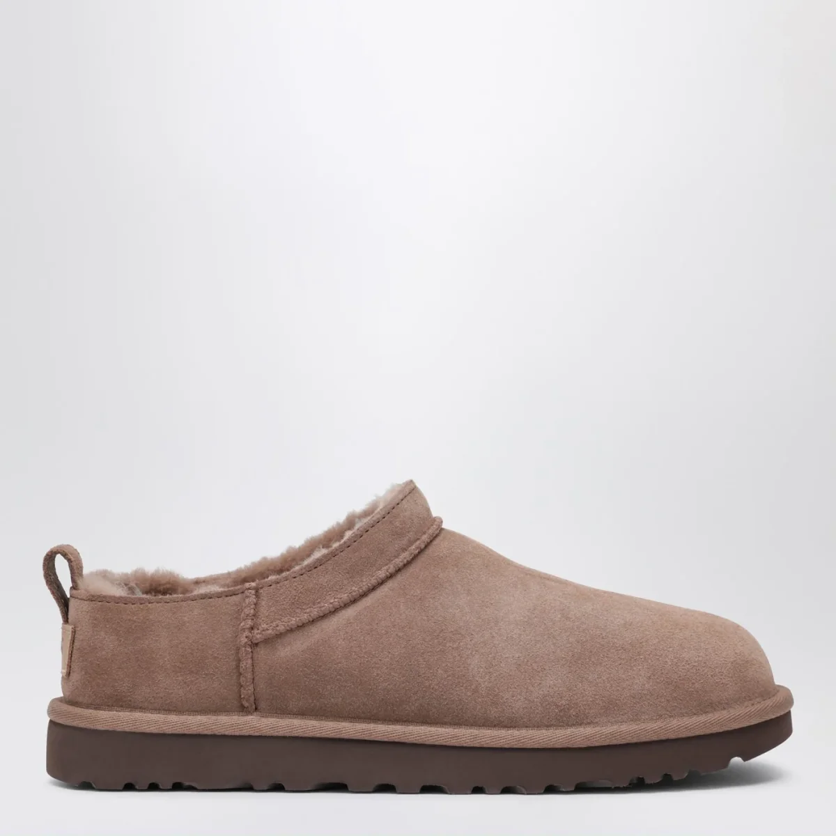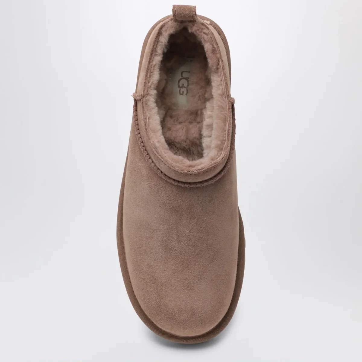 Stivaletti di UGG in montone rovesciato e pelle scamosciata, caratterizzati da punta tonda, tirante posteriore, patch in suede posteriore con logo lettering e suola platform in gomma.