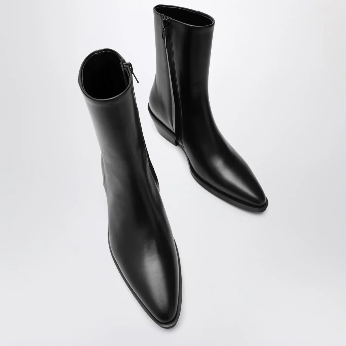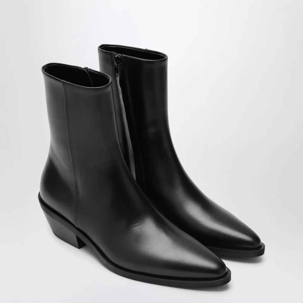 Stivaletti di A.Emery in pelle neri, caratterizzati da design punta, alti alla caviglia, zip interna e tacco cubano in cuoio.