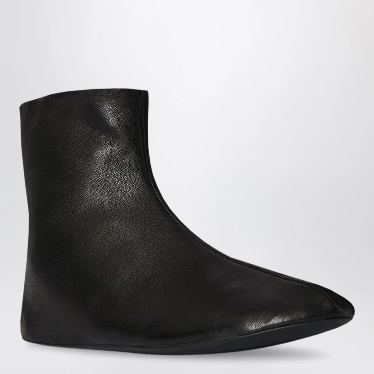 Stivaletto di The Row in nappa liscia nero, caratterizzato da con chiusura con zip laterale interna, fodera in shearling e suola flessibile rivestita in gomma.