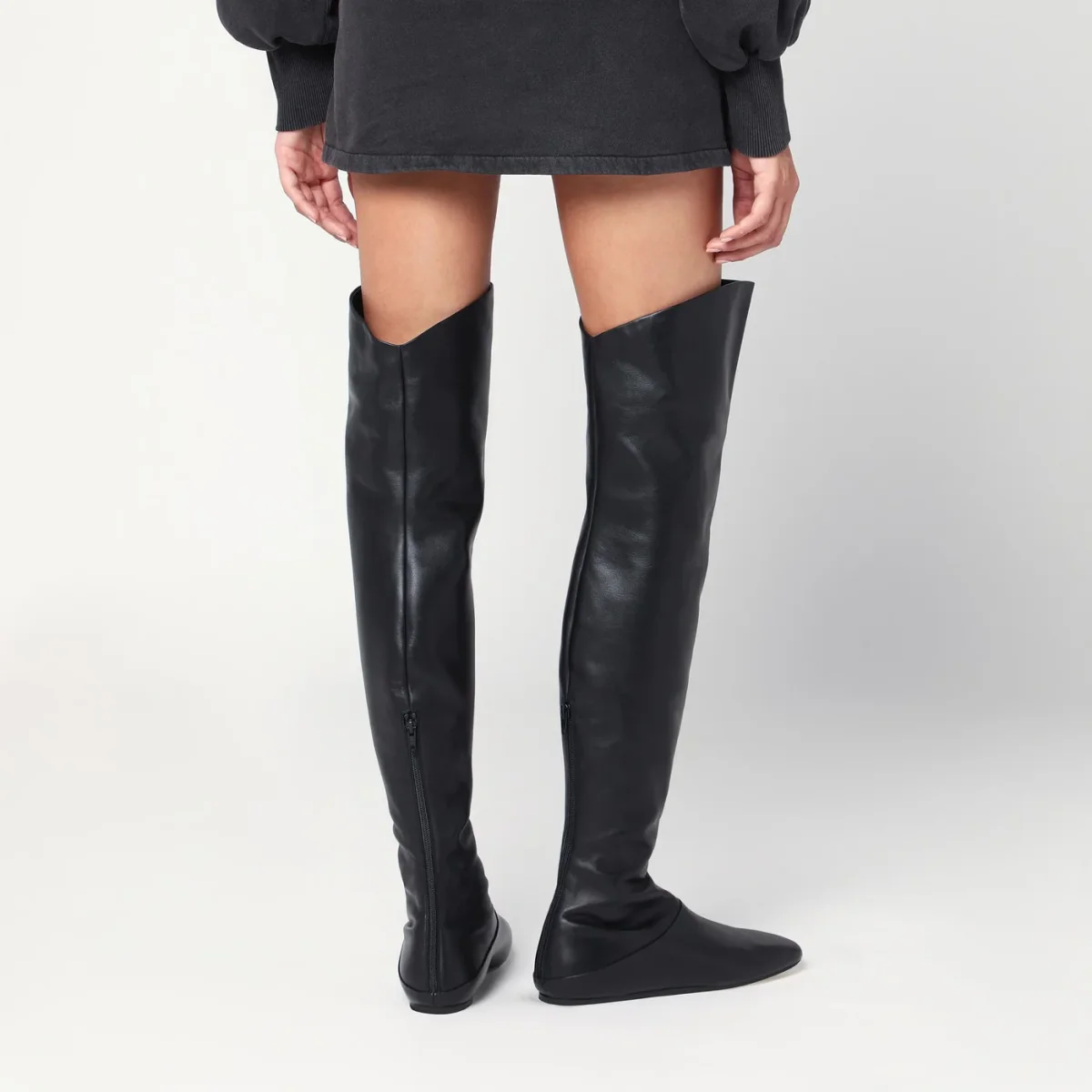 Stivali alti di Le Monde Béryl in pelle di agnello neri, caratterizzati da chiusura posteriore con zip, punta a mandorla e suola in cuoio.
