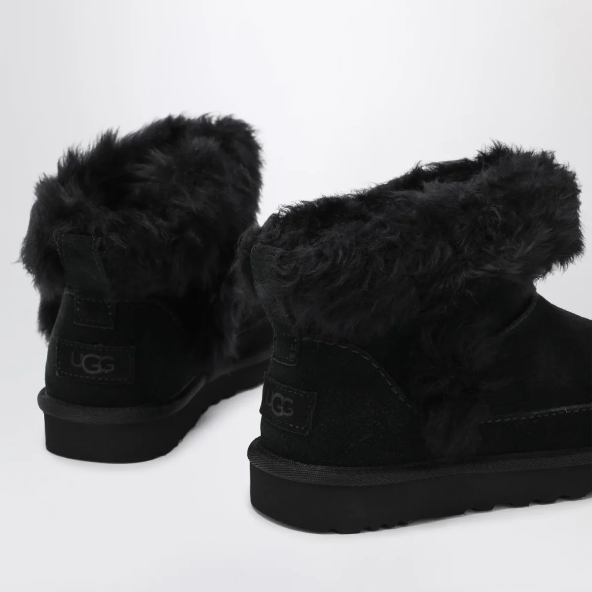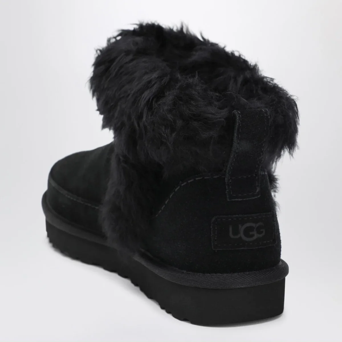 Stivali di UGG in pelle scamosciata nera, caratterizzato da punta tonda, tirante posteriore, fodera e soletta in UGGplush in lana rigenerata e lyocell TENCEL, suola in EVA da canna da zucchero, bordo in tessuto e logo stampato a caldo in rilievo.