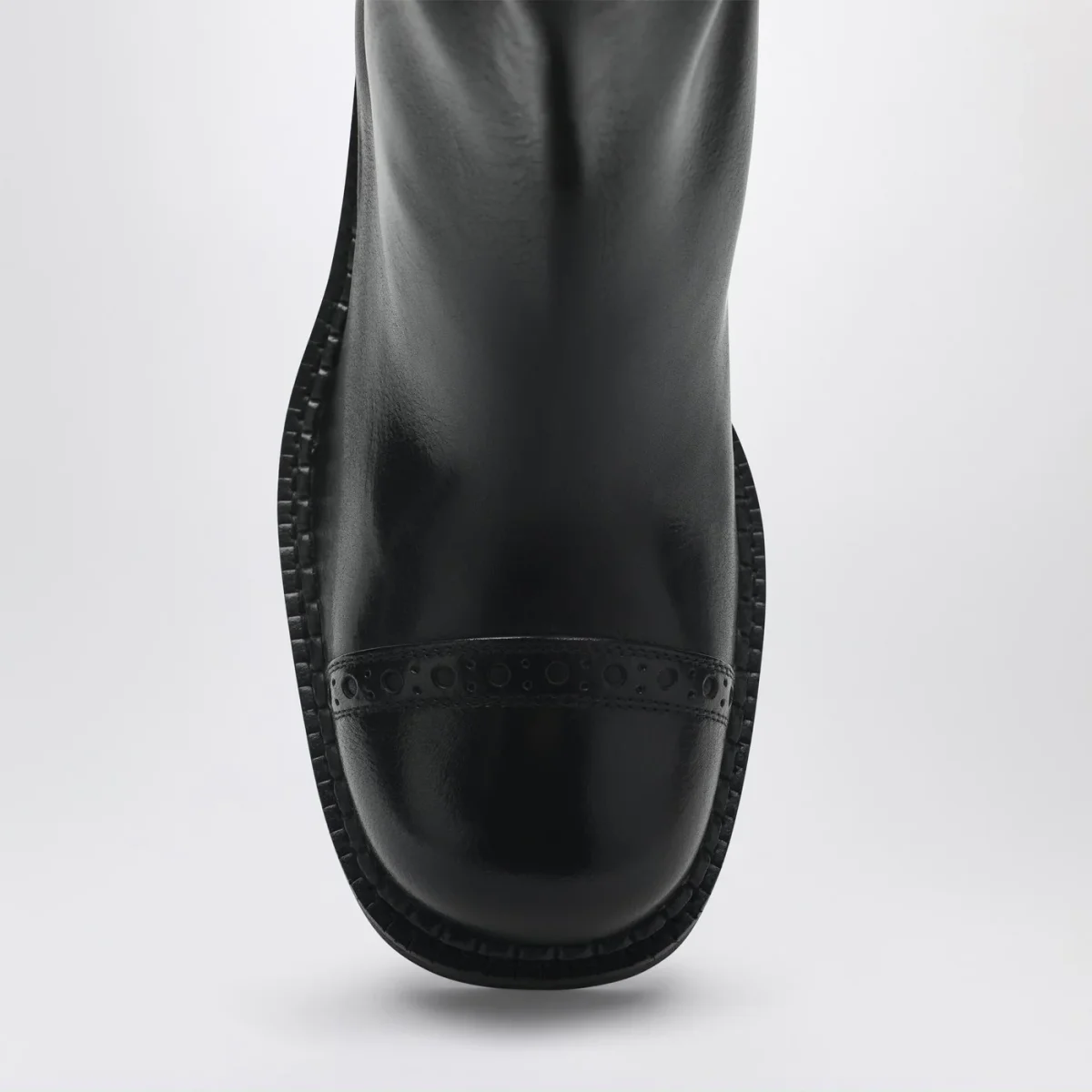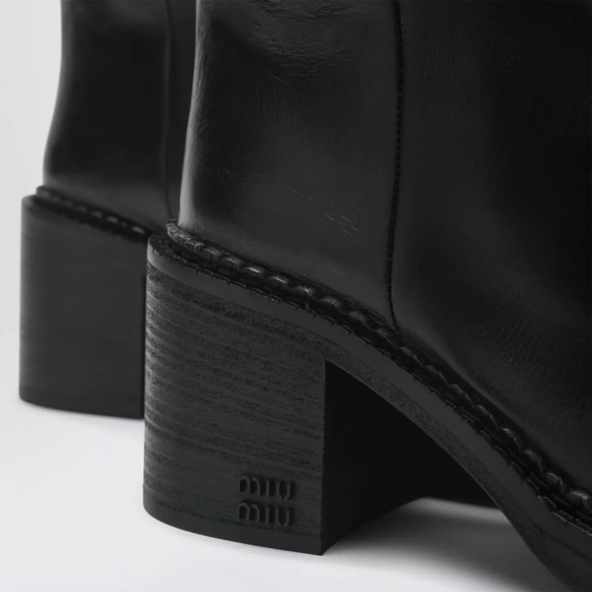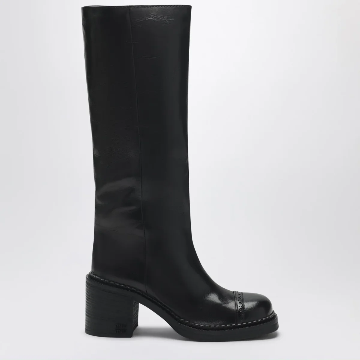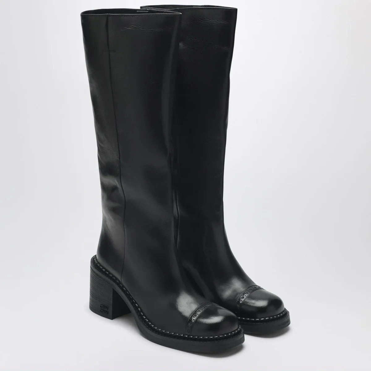 Stivaletti di Miu Miu in pelle neri, caratterizzati da dettagli brogue sulla punta, sottopiede in pelle, logo serigrafato, suola in cuoio e gomma.
