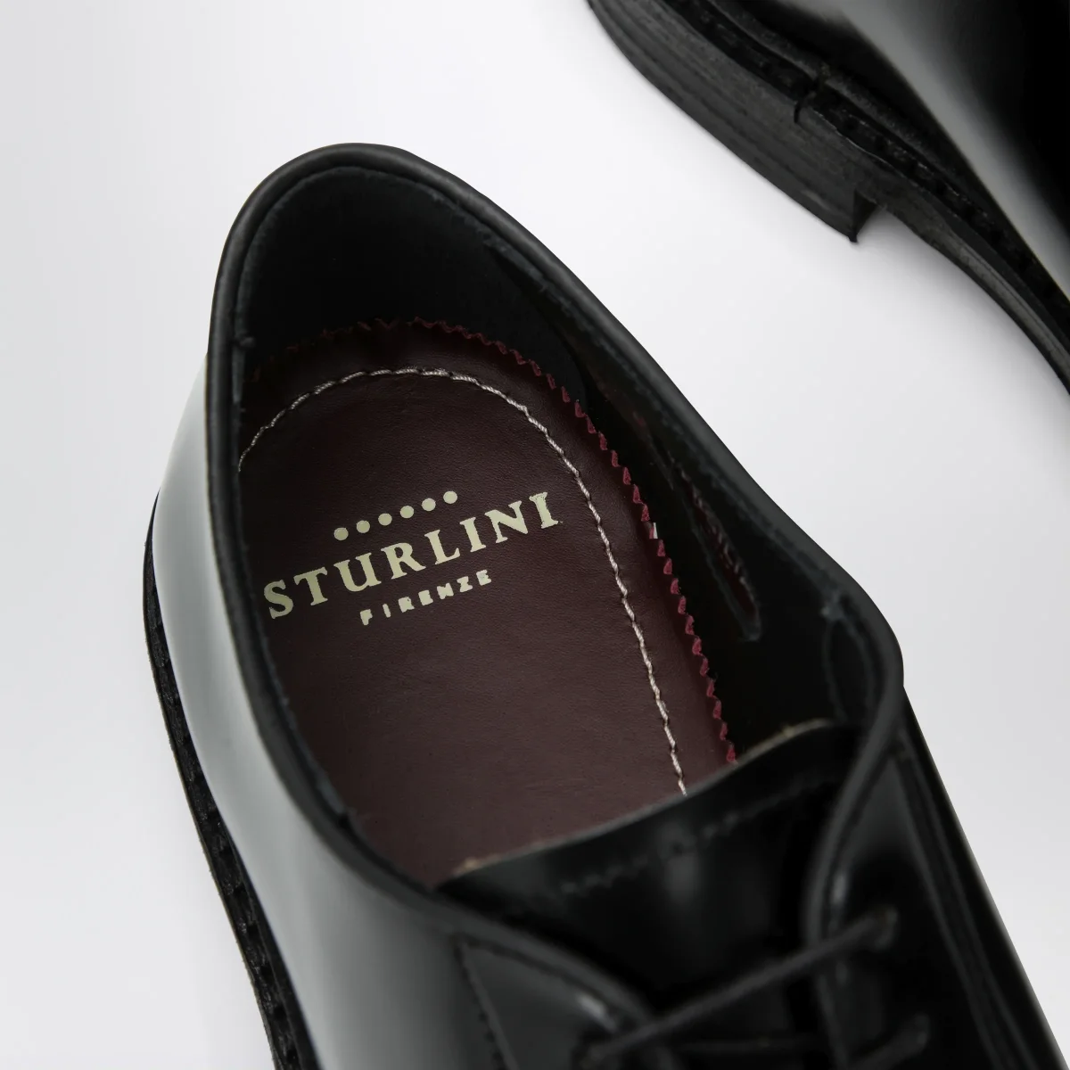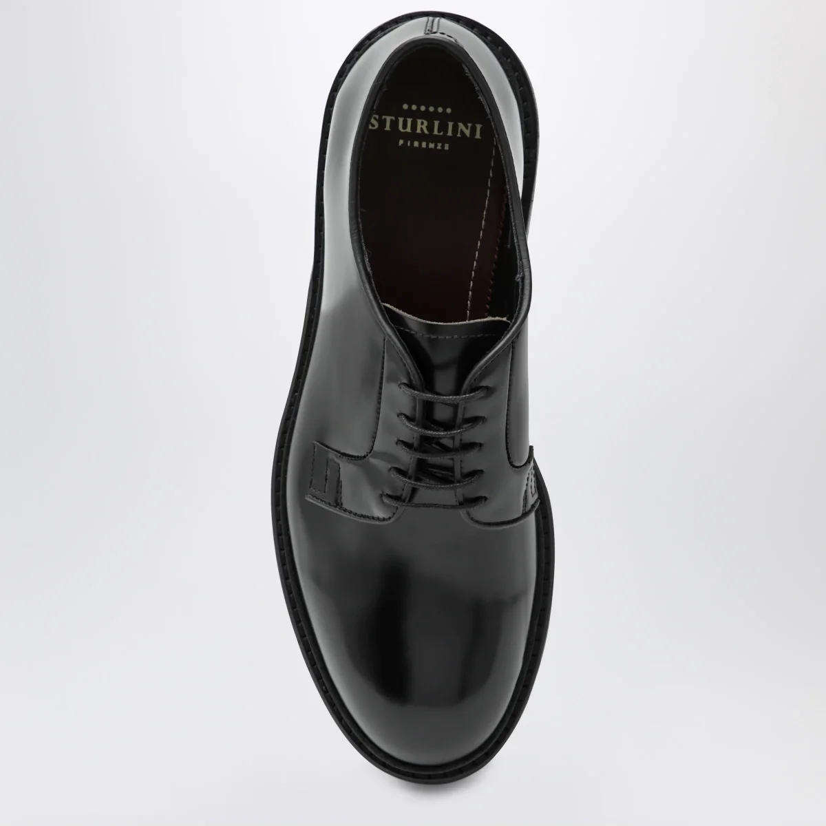 Stringata di Sturlini in pelle liscia• Colore: Nero• Chiusura con stringhe• Punta tonda• Suola in cuoio e gomma