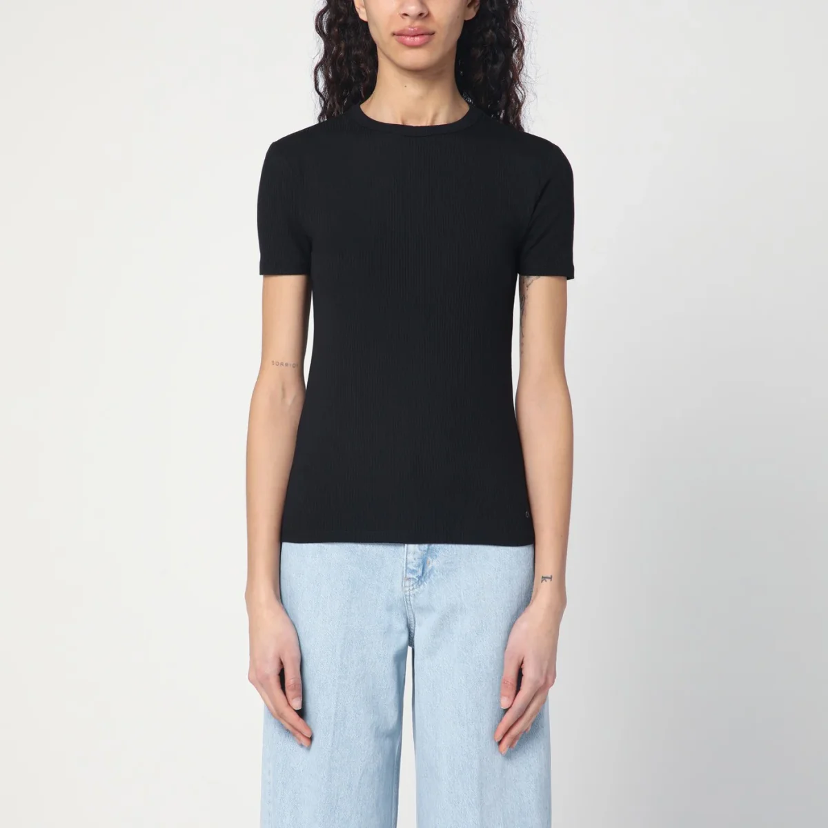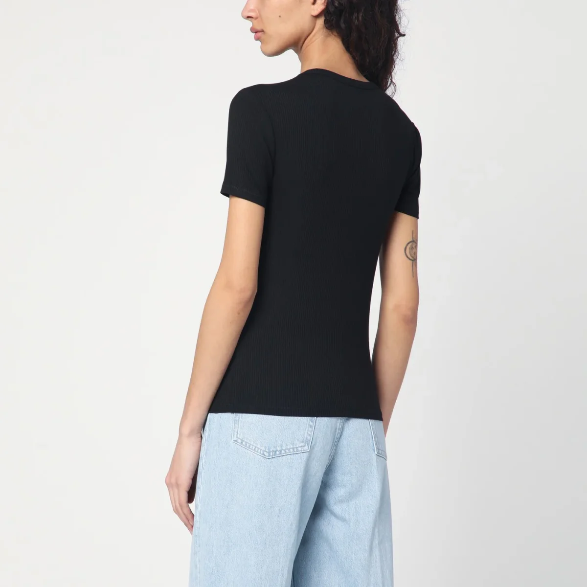 T-shirt girocollo di Calvin Klein in modal nera, caratterizzata da manica corta, design a costine e ricamo logo sul bordo.