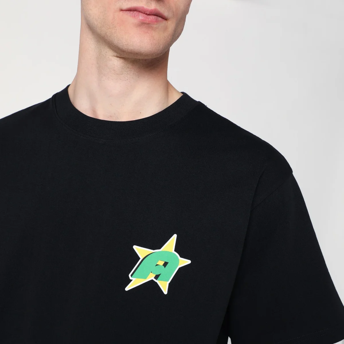 T-shirt di Awake NY in cotone nera, caratterizzata da manica corta, girocollo a costine e stampa logo a contrasto sul petto e sul retro.