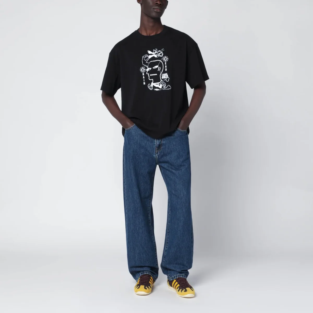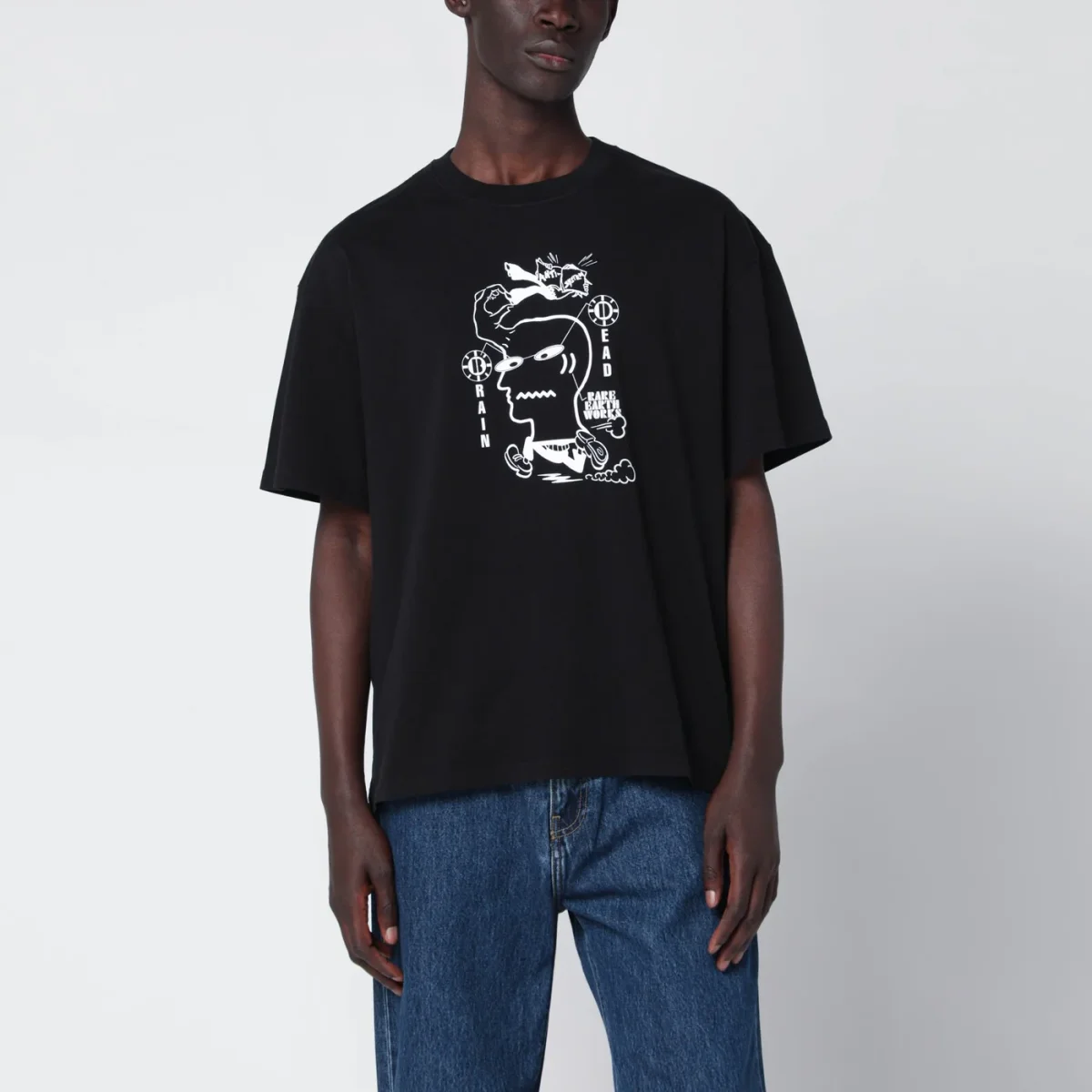 T-shirt di Brain Dead in cotone nera, caratterizzata da maniche corte, girocollo a costine e stampa logo a contrasto sul petto.