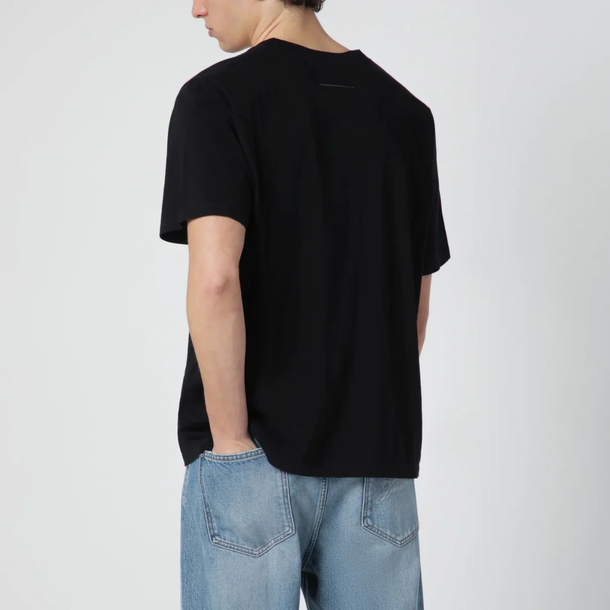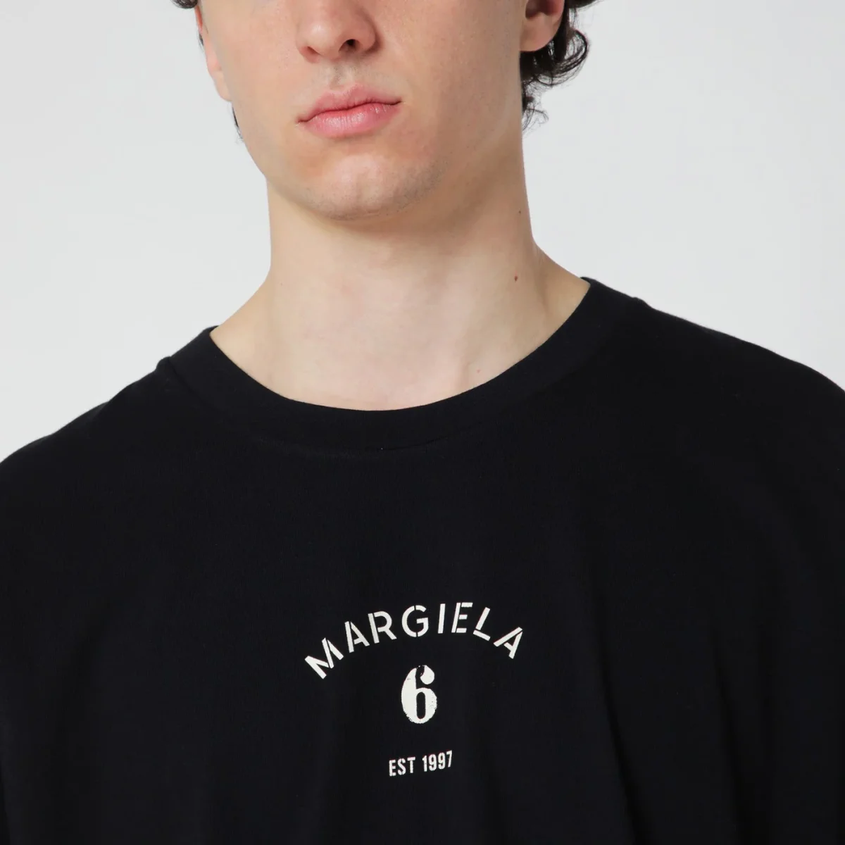 T-shirt di MM6 Maison Margiela in cotone nera• Maniche corte• Girocollo a costine• Stampa logo a contrasto sul davanti