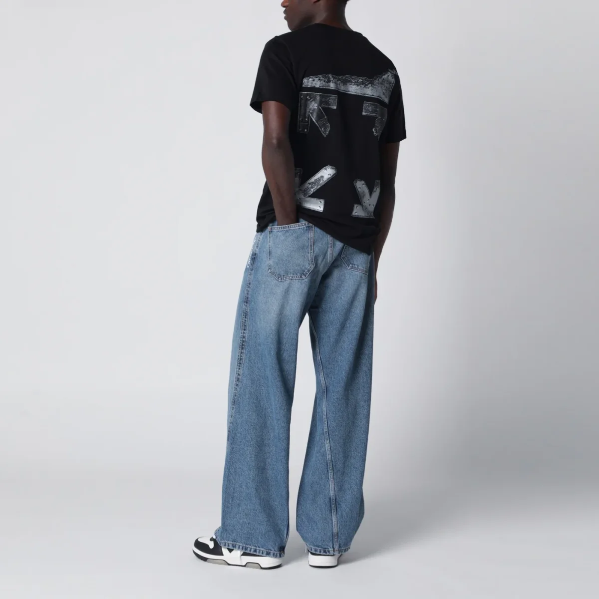 T-shirt di Off-White in cotone nera• Stampa con motivo a freccia sul retro• Logo lettering sul petto a contrasto• Maniche corte• Girocollo a costine