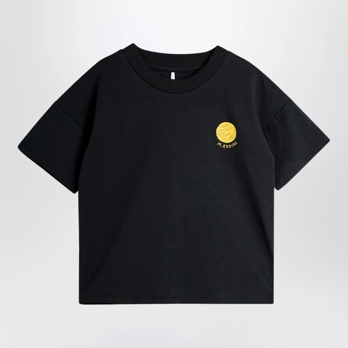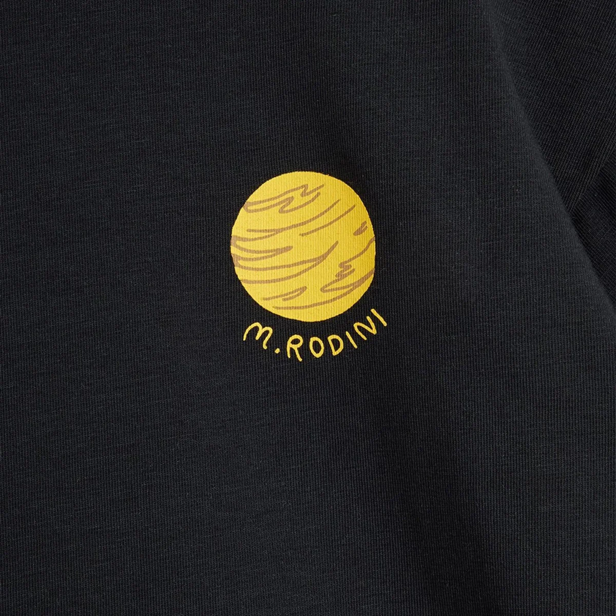 T-shirt di Mini Rodini in cotone organico• Colore: Nero• Maniche corte• Girocollo a costine• Stampa Planet sul petto