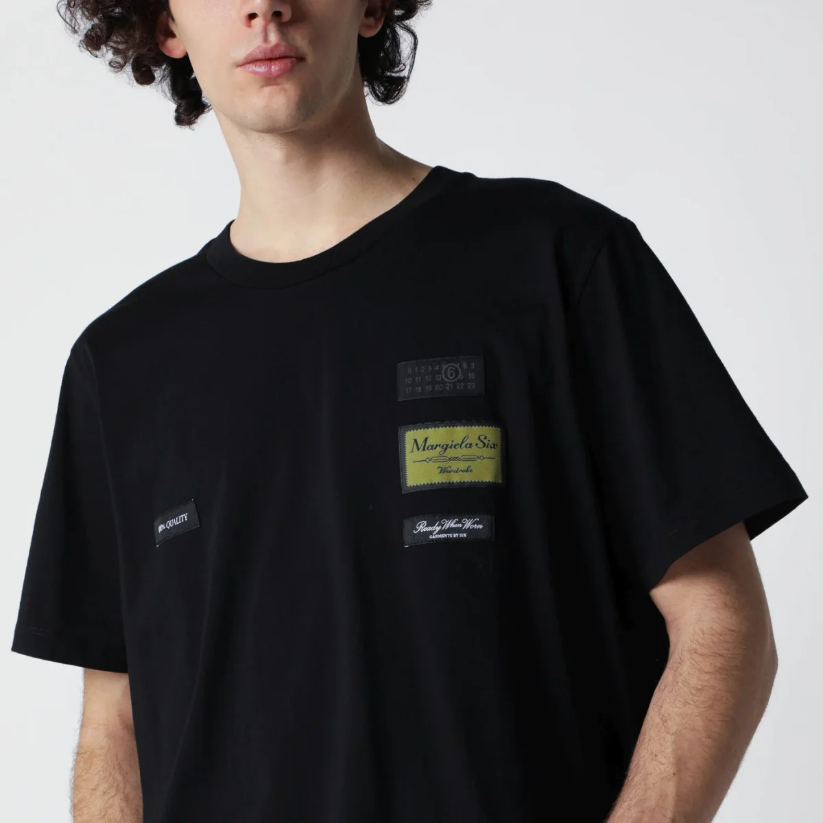 T-shirt di MM6 Maison Margiela in jersey di cotone nera• maniche corte• girocollo a costine• etichette logo in jacquard frontali•logo e White Stitch Line sul retro