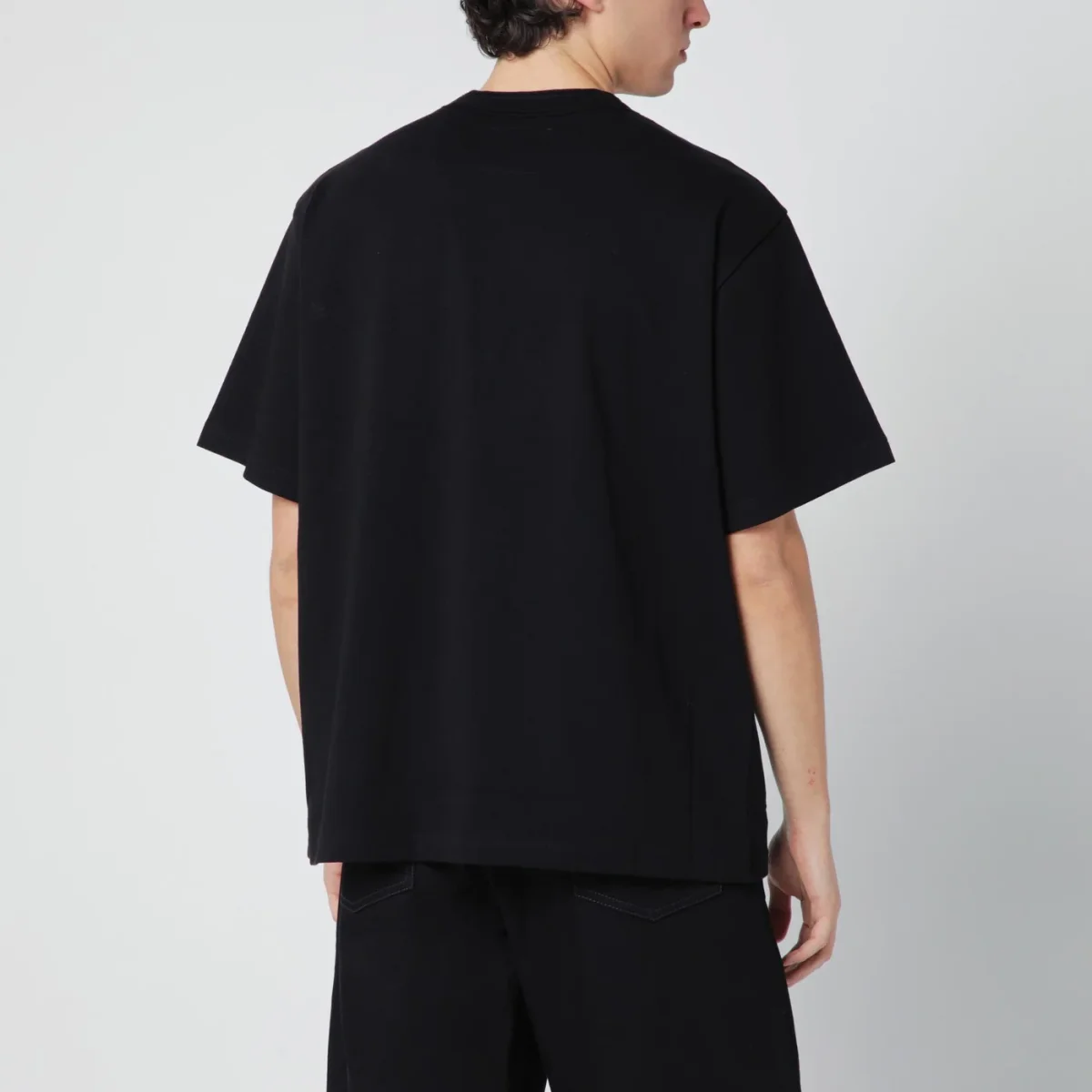 T-shirt nera in cotone con patch logo