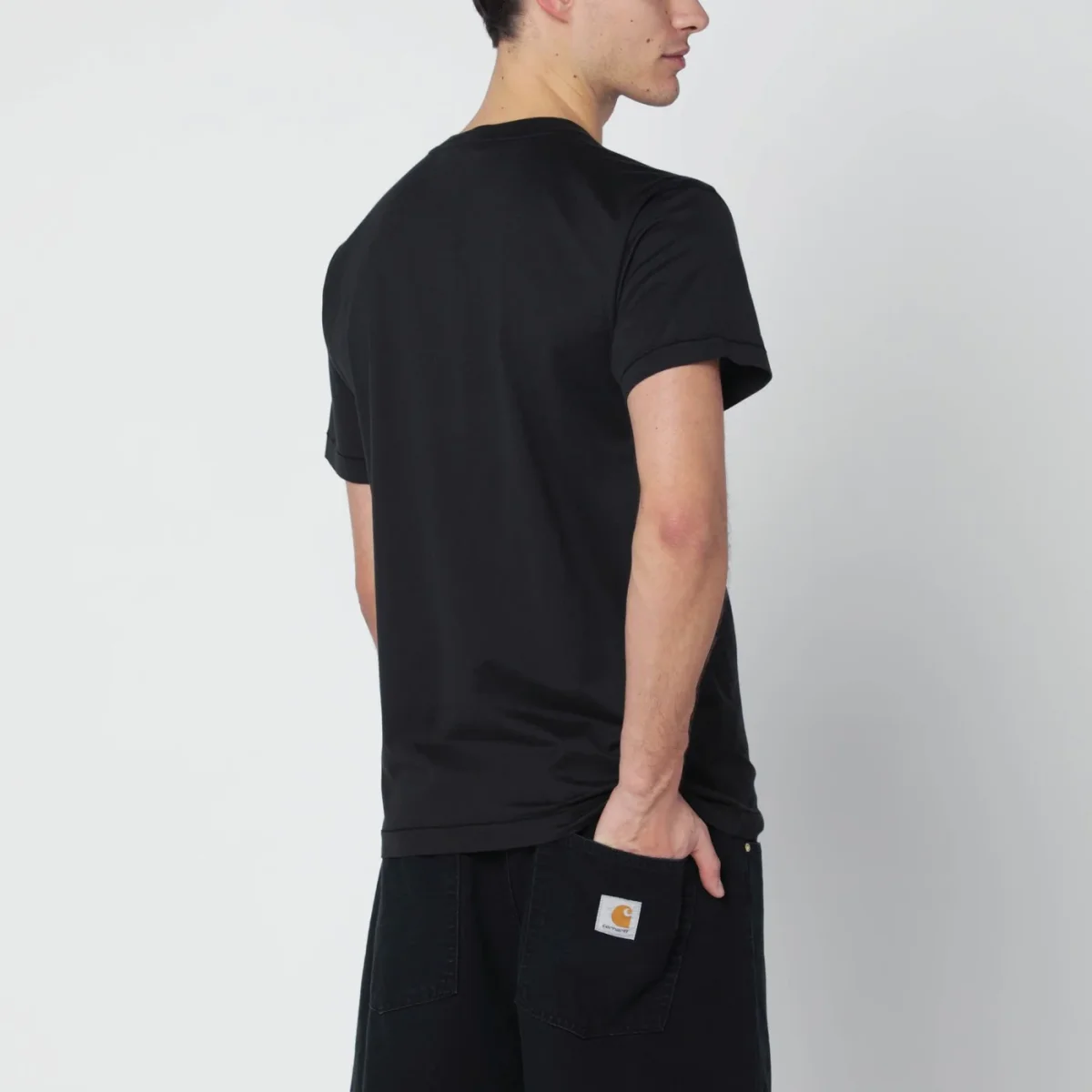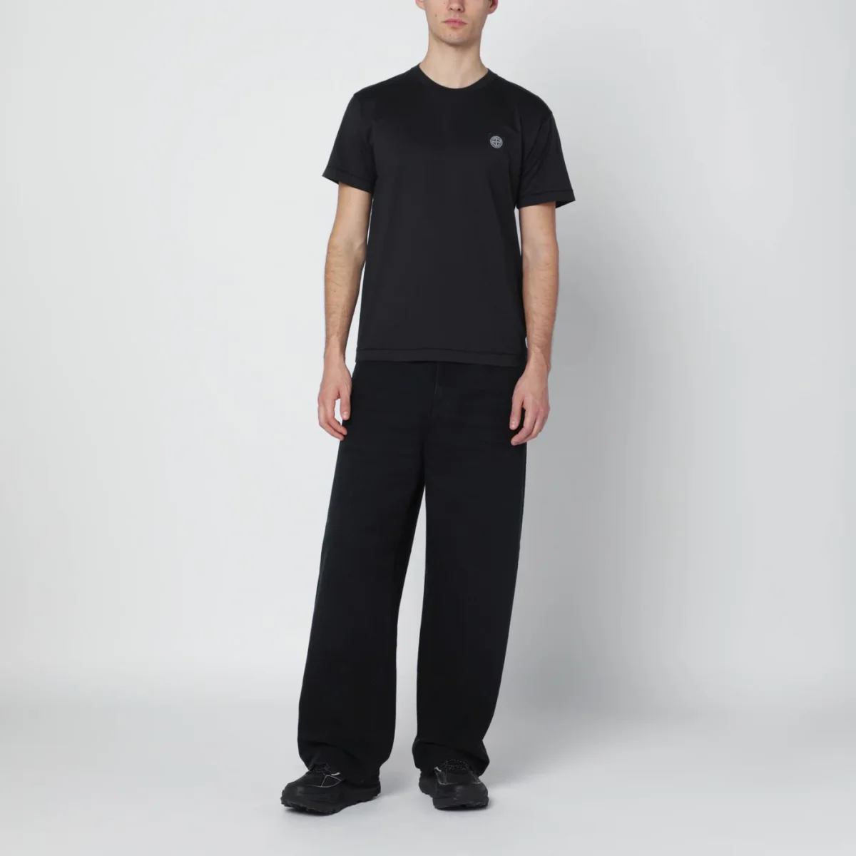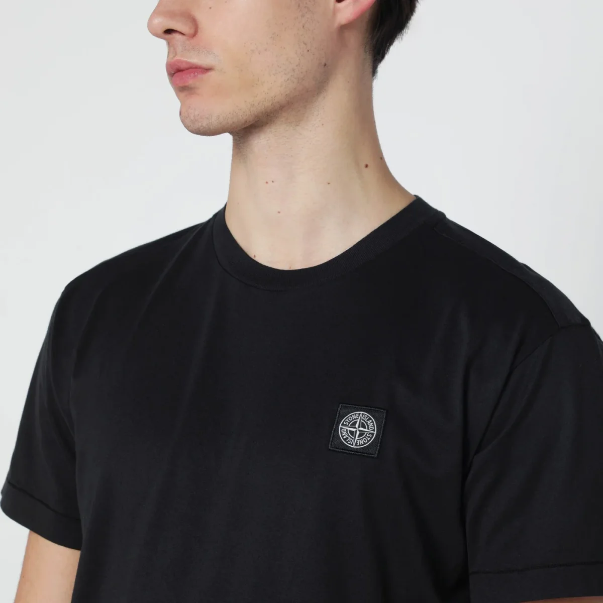 T-shirt girocollo di Stone Island in cotone nera• manica corta• patch logo sul petto• vestibilità slim