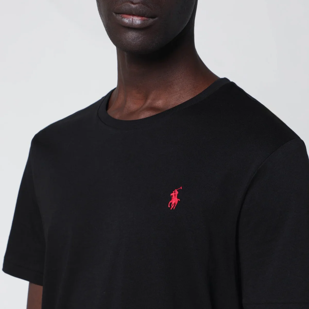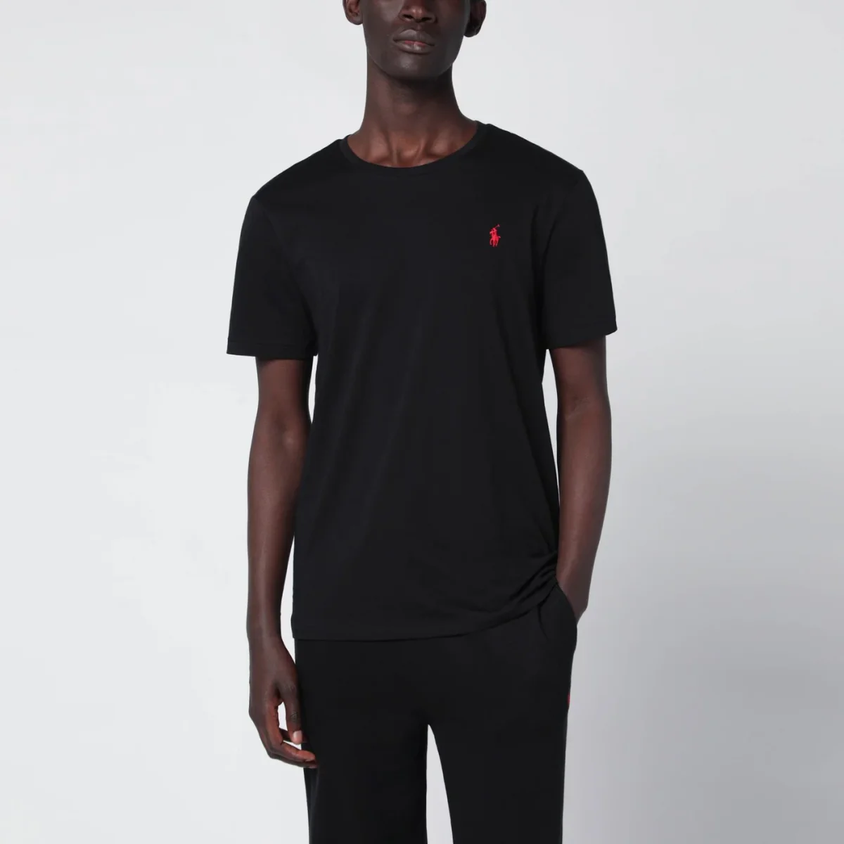 T-shirt di Polo Ralph Lauren in cotone nera• logo a contrasto ricamato sul petto• girocollo a costine• maniche corte