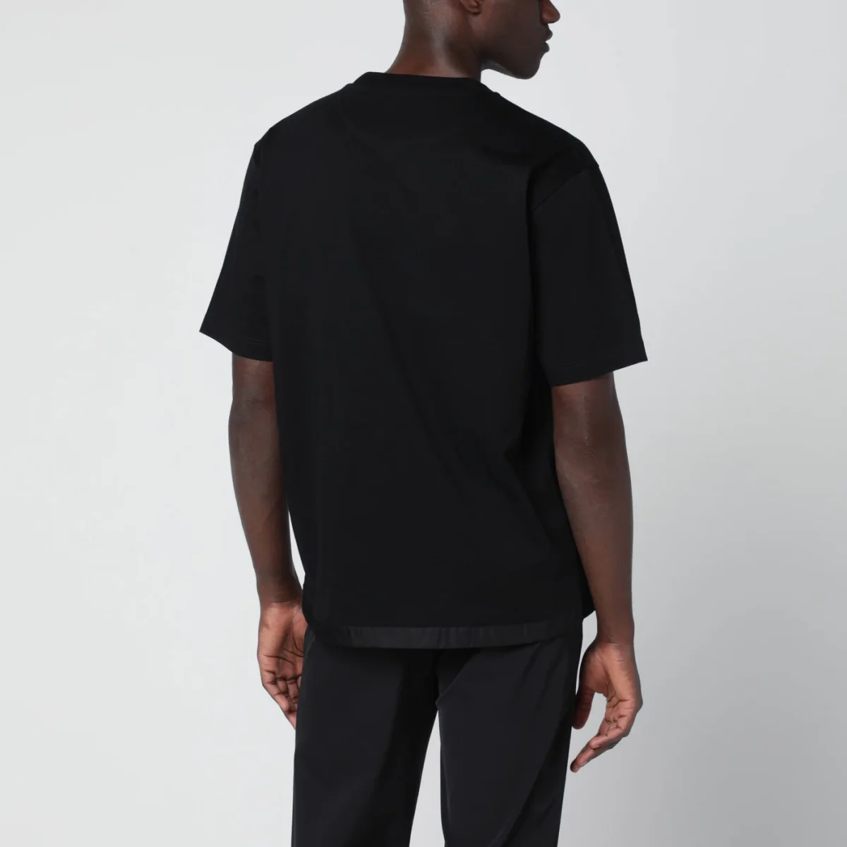T-shirt nera in cotone e Re-Nylon
