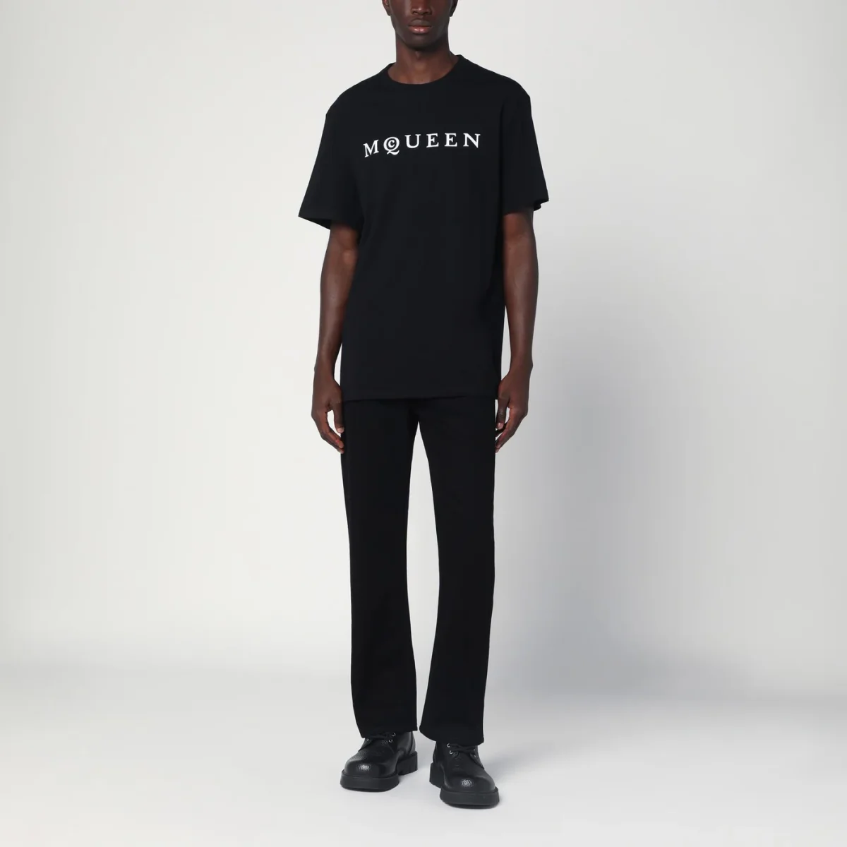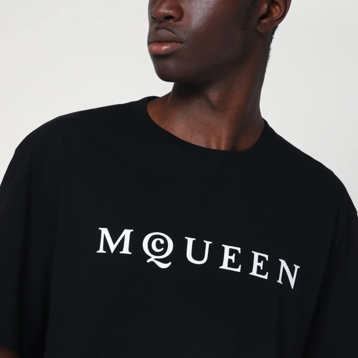 T-shirt di Alexander McQueen in jersey di cotone nera, caratterizzata da maniche corte, girocollo a costine e logo lettering a contrasto sul davanti.