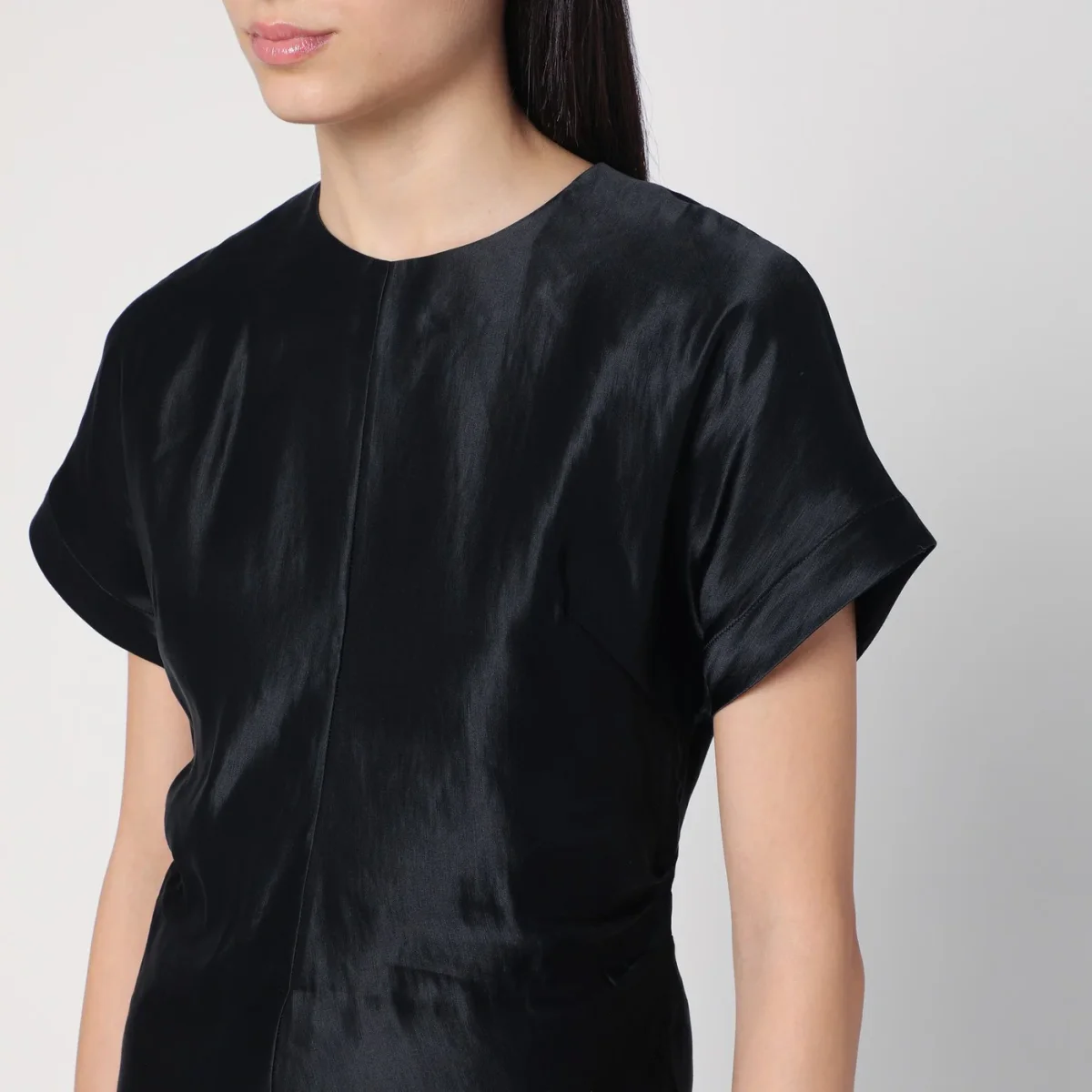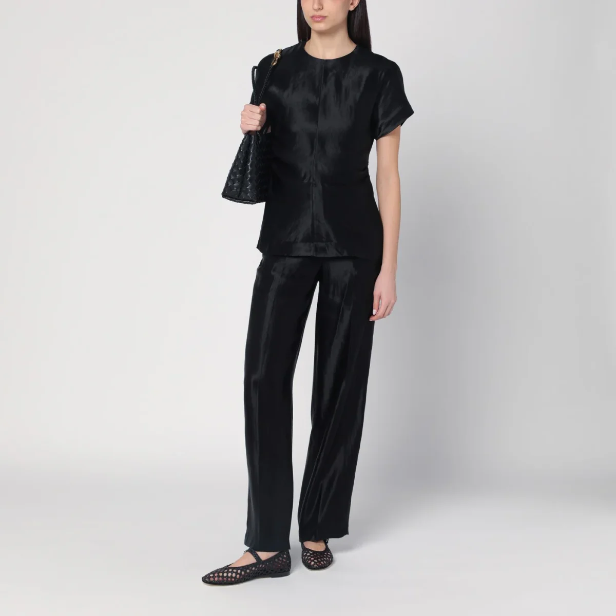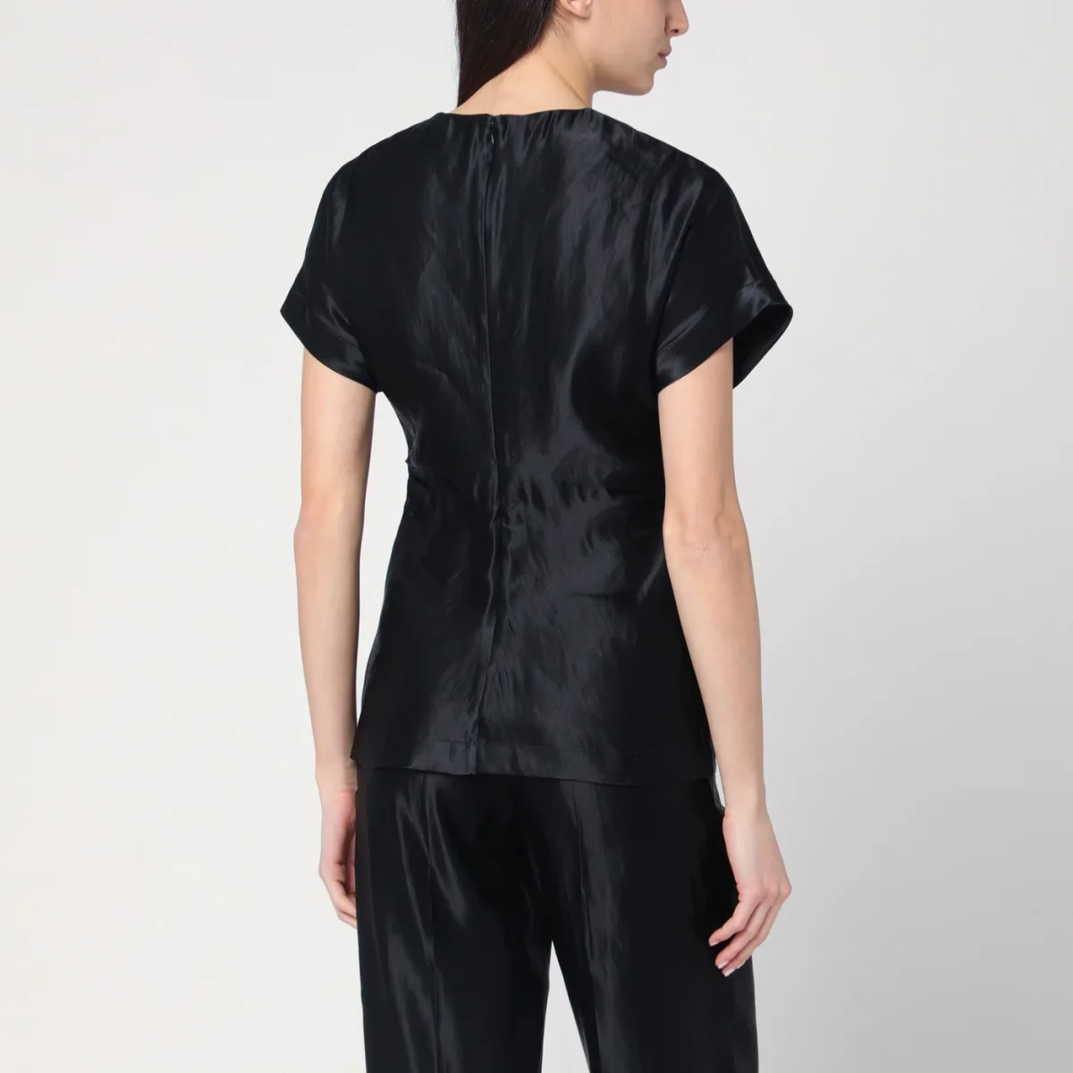 T-shirt nera in lino e seta