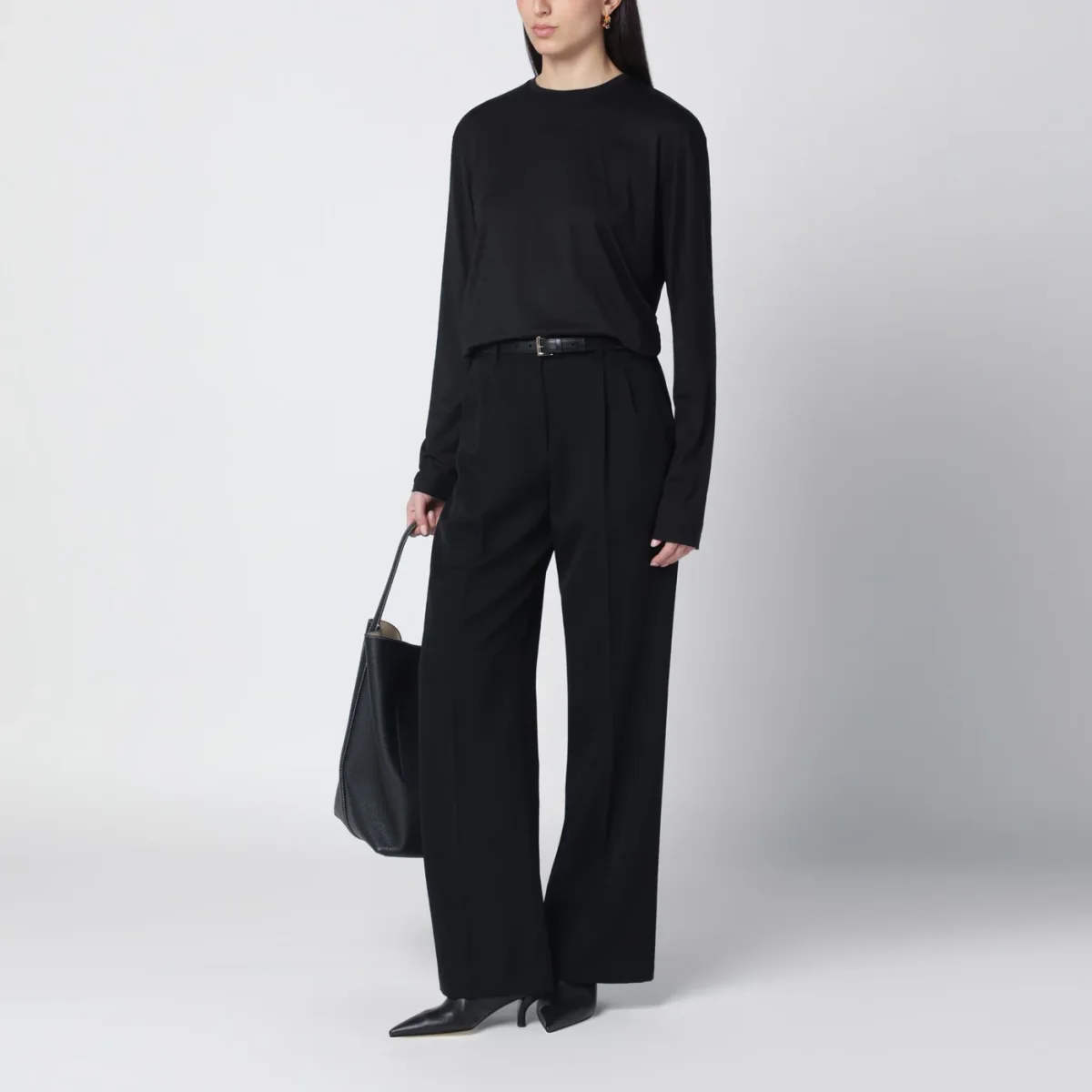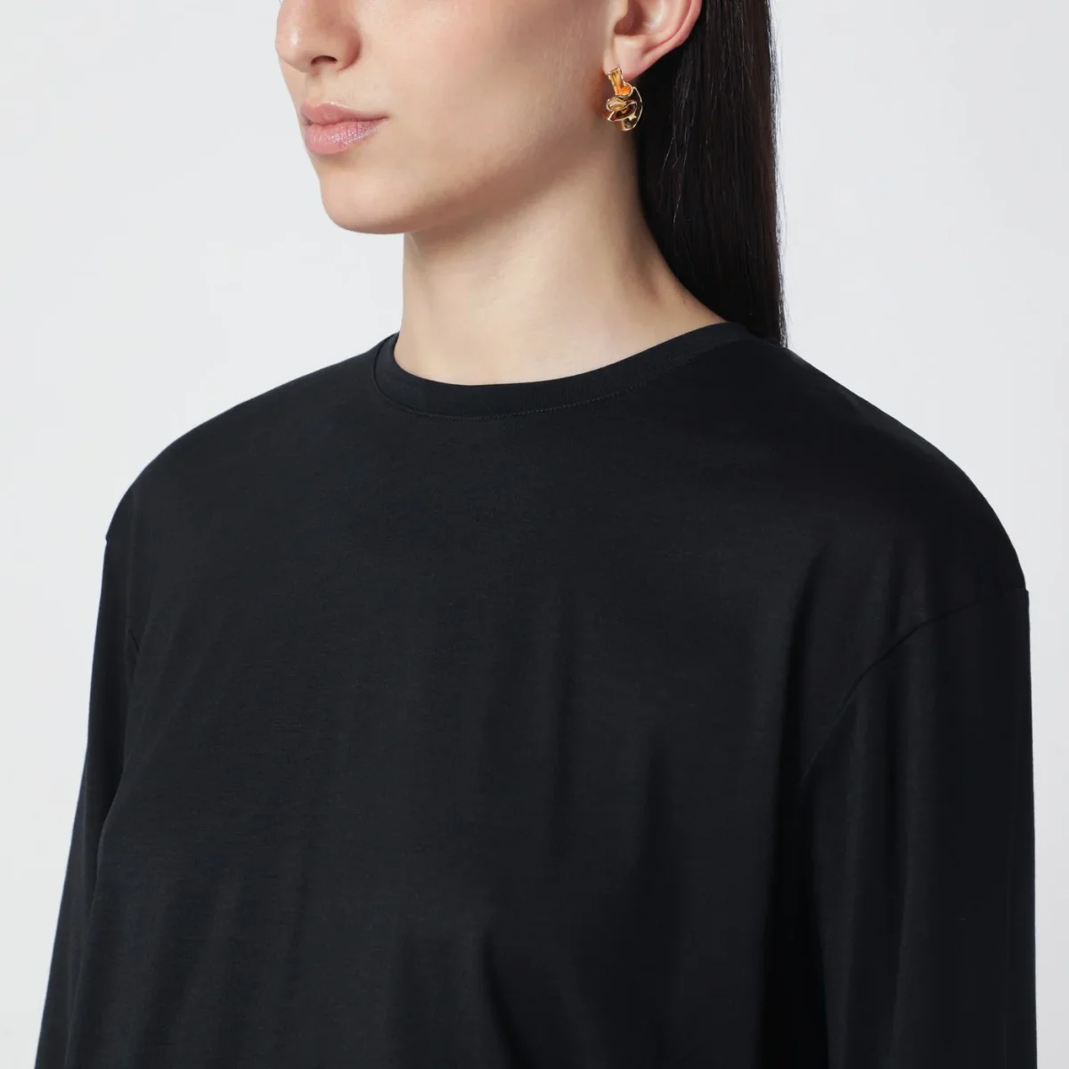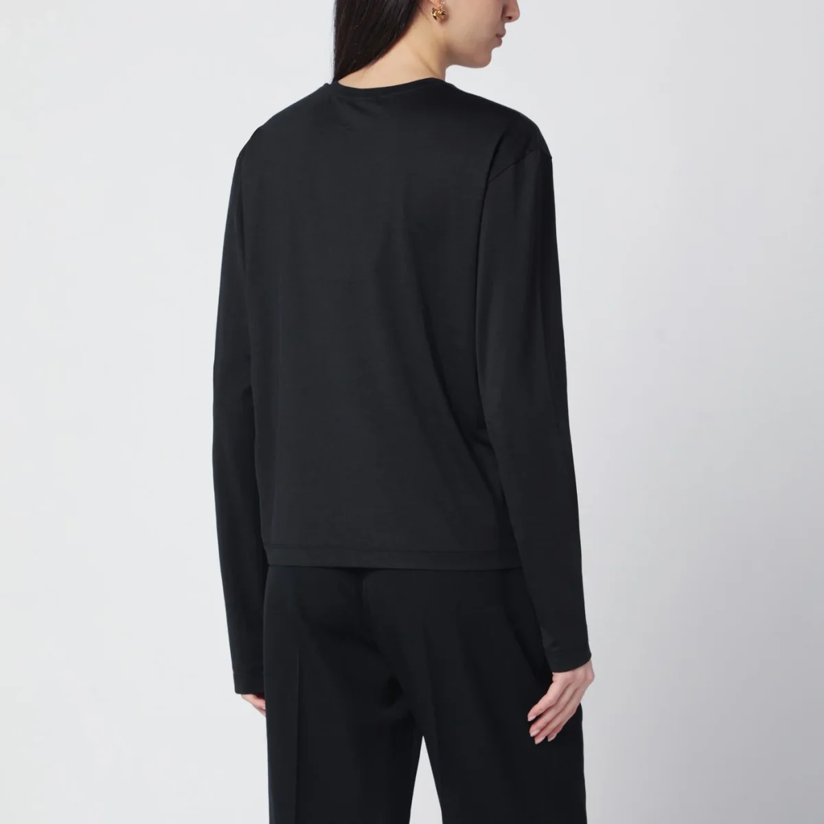 T-shirt nera in misto cotone organico di TOTEME con maniche lunghe