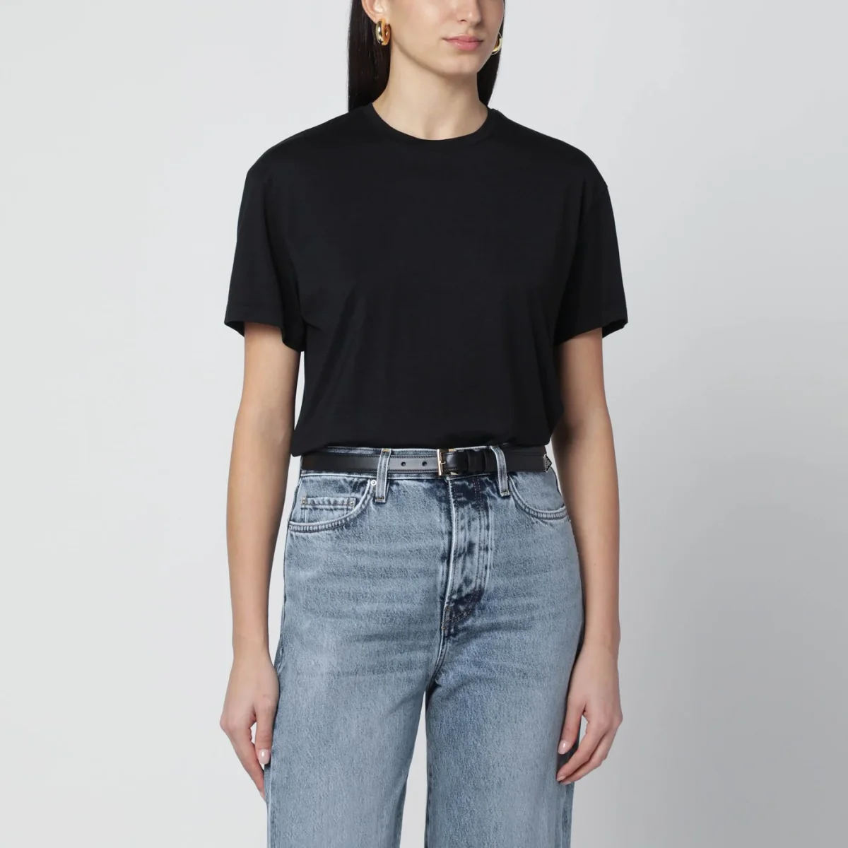 T-shirt girocollo di TOTEME in misto cotone organico nera con maniche corte