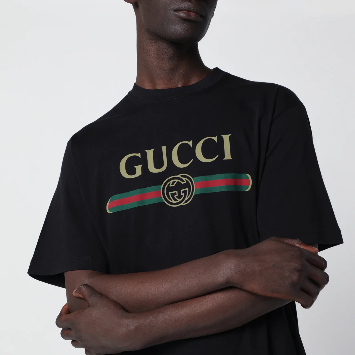 T-shirt in jersey di misto seta stampata di Gucci• Colore: Nero• Stampa con Incrocio GG e Gucci Web• Maniche corte• Girocollo a costine