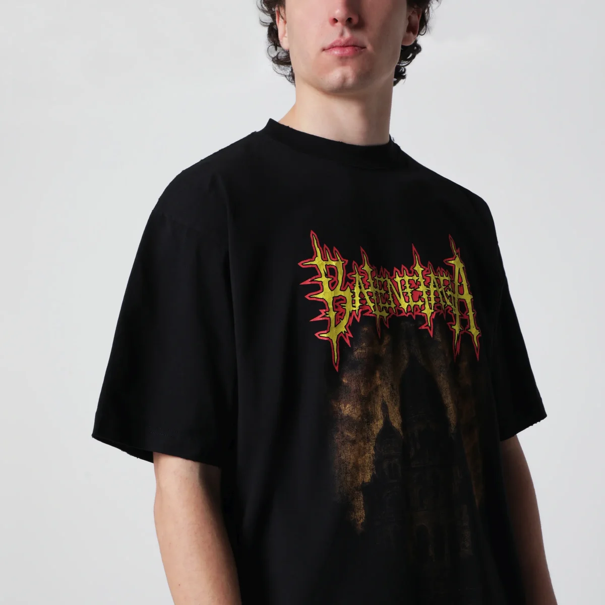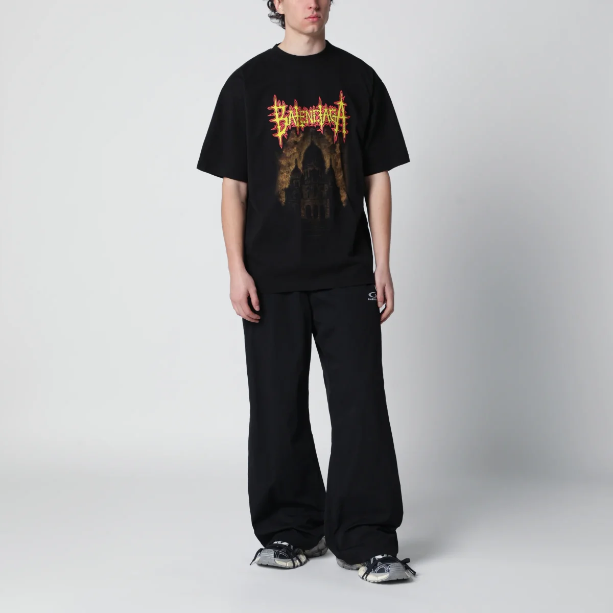 Maglietta girocollo con logo di Balenciaga• Colore: Nero• Logo sul davanti• Vestibilità oversize• Maniche corte